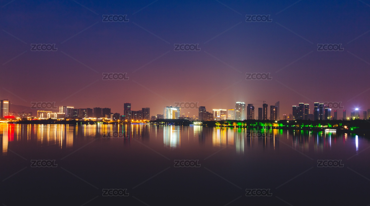 中国江苏省苏州工业园区金鸡湖景观夜景傍晚