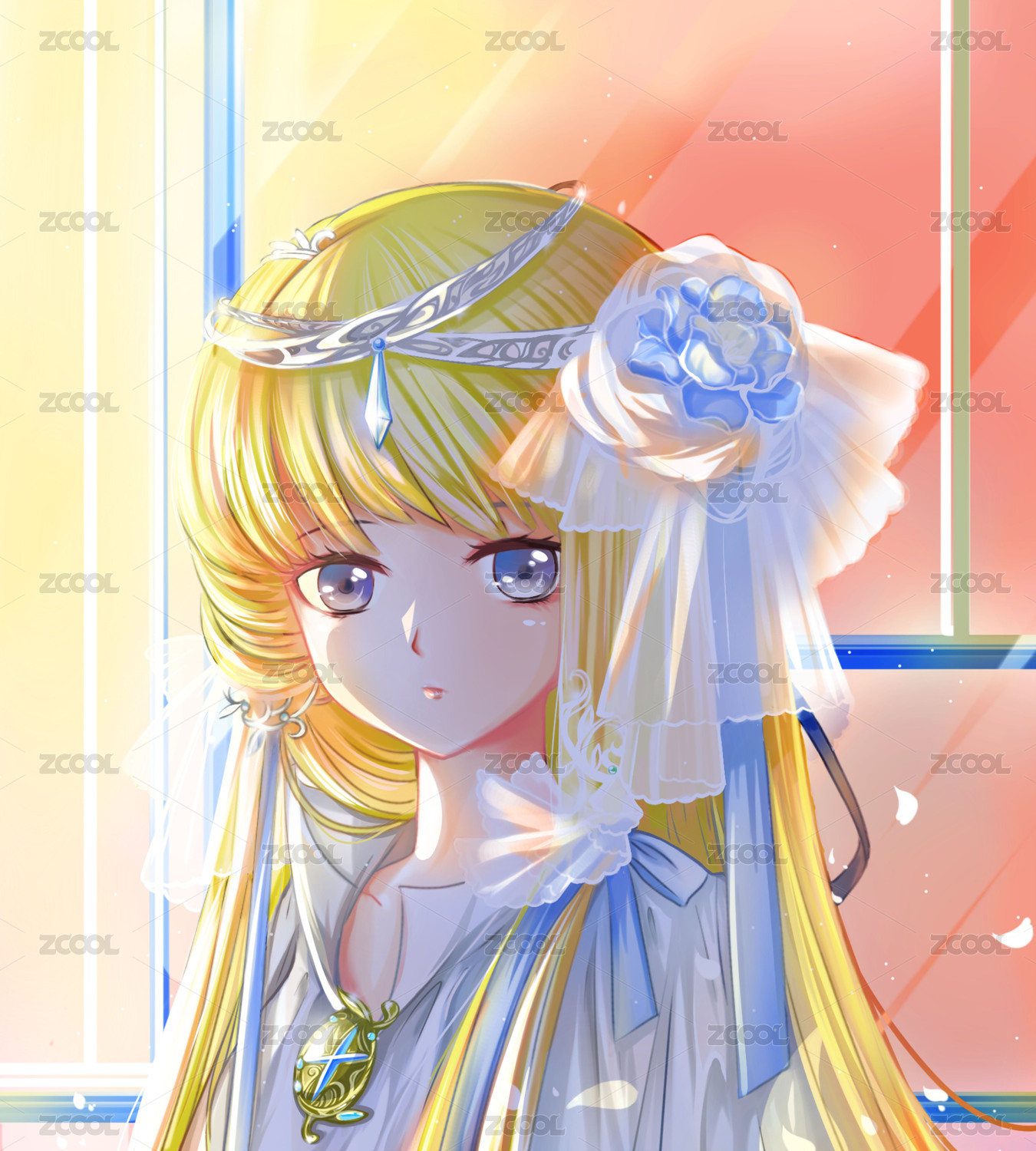 蓝色浪漫二次元头像天国的嫁衣婚纱女孩无字