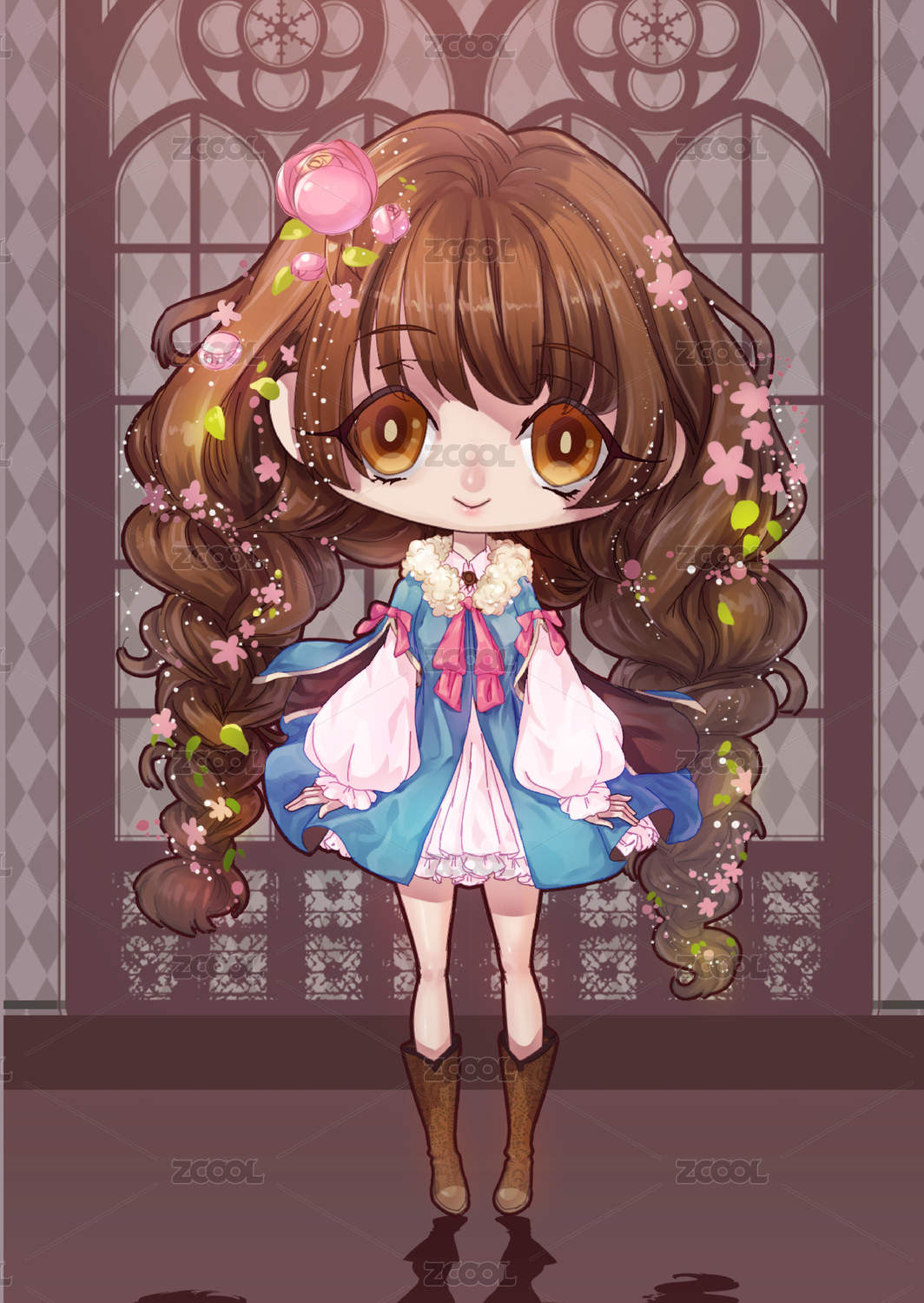 女孩,可爱,公主,漫画,头像,壁纸,插画,海报,美女,蓝色