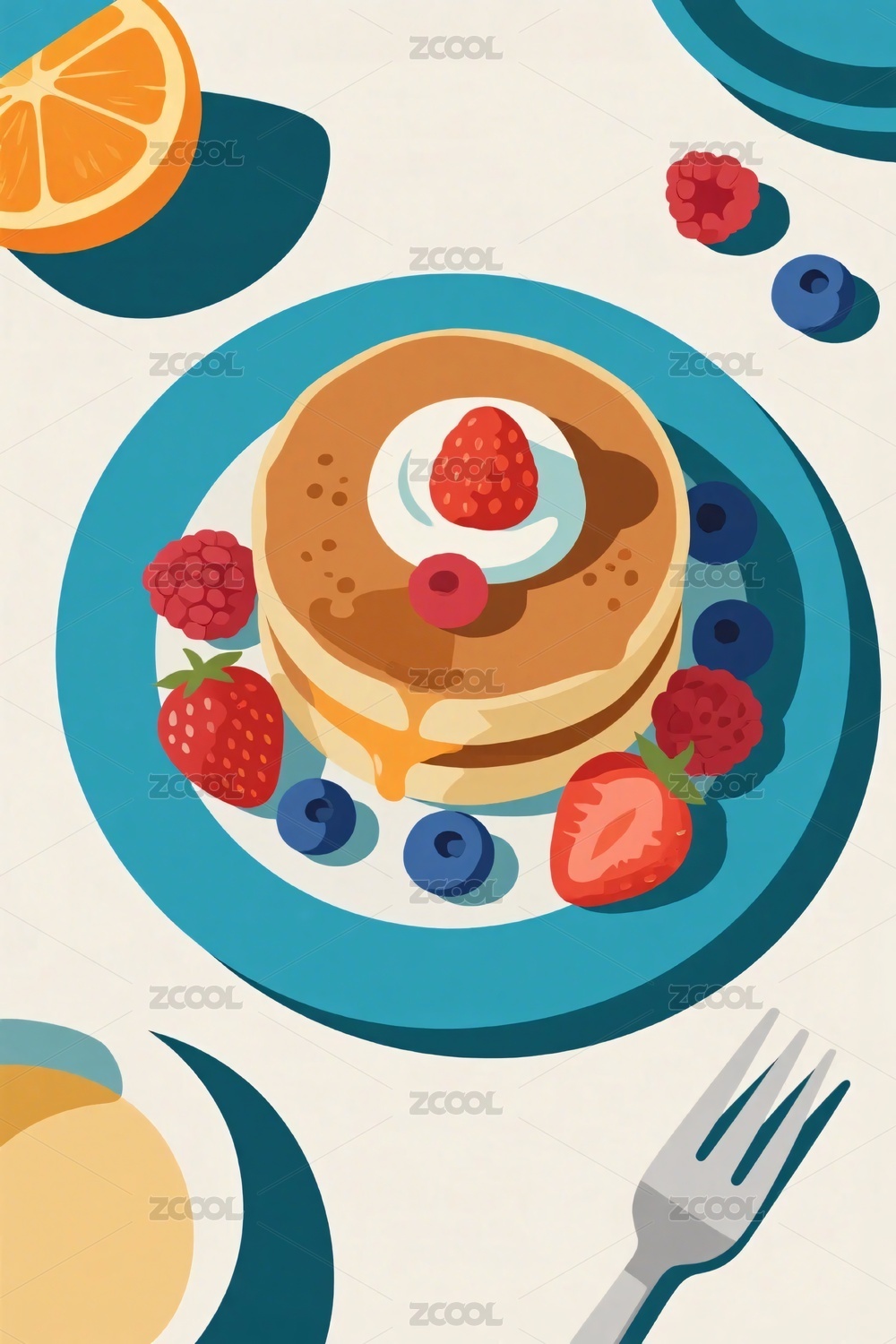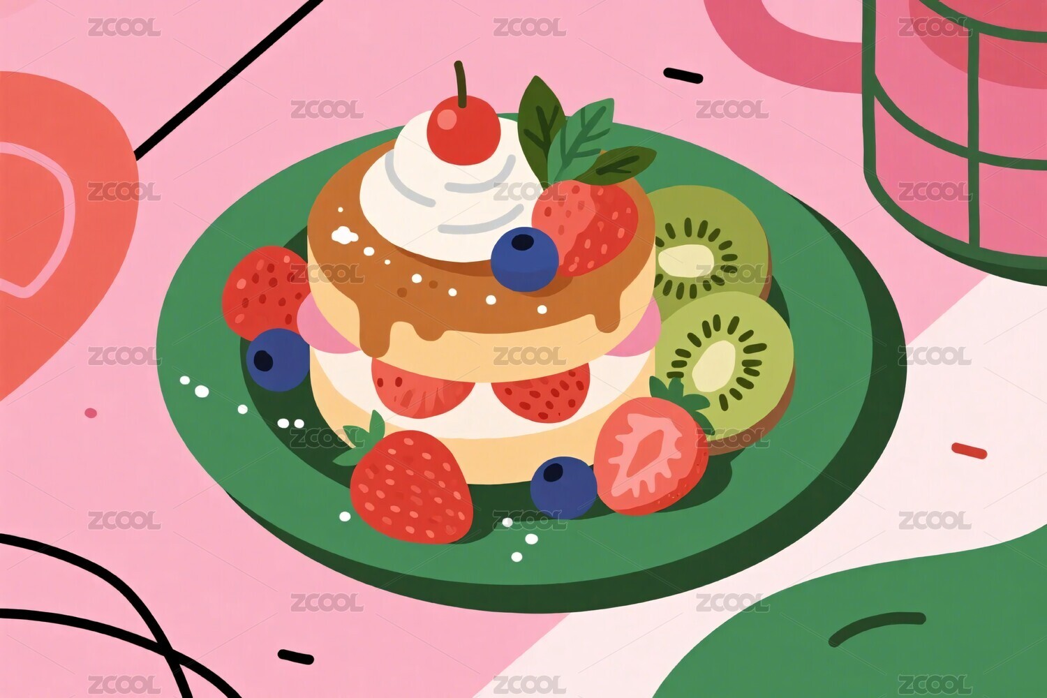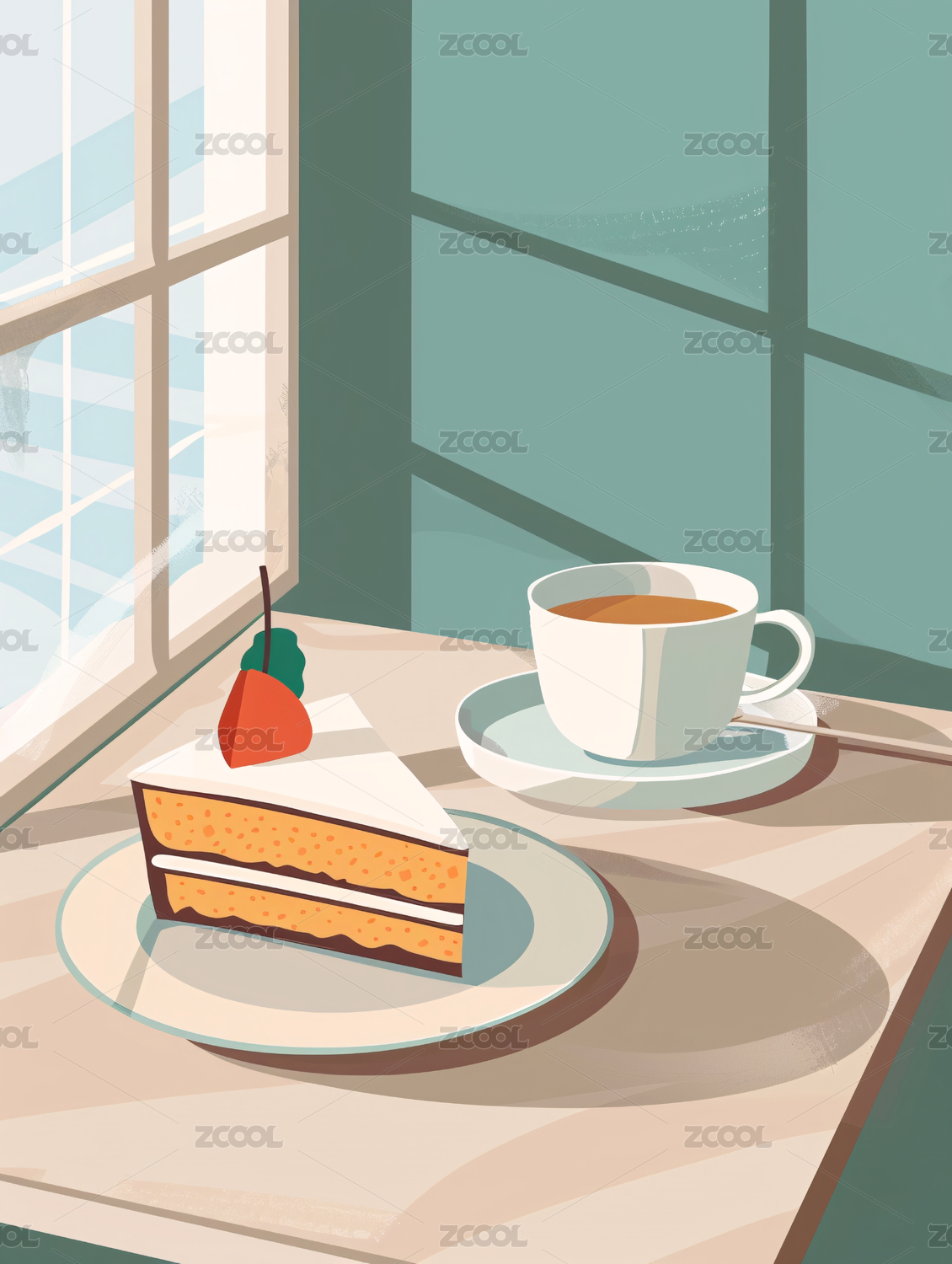 牛奶咖啡蛋糕下午茶简约扁平风时尚插画