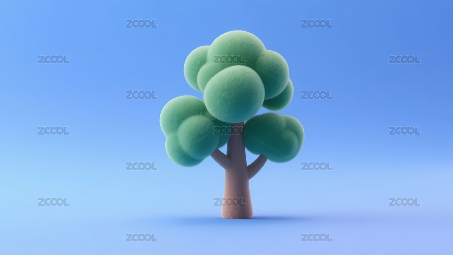 绿色卡通树与蓝色渐变
