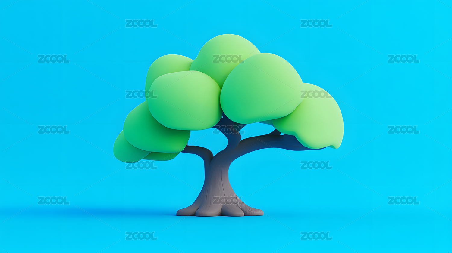 简约风格的绿色卡通树