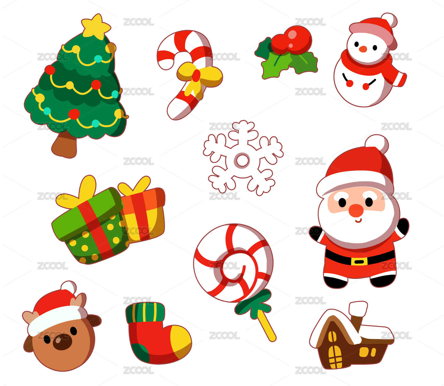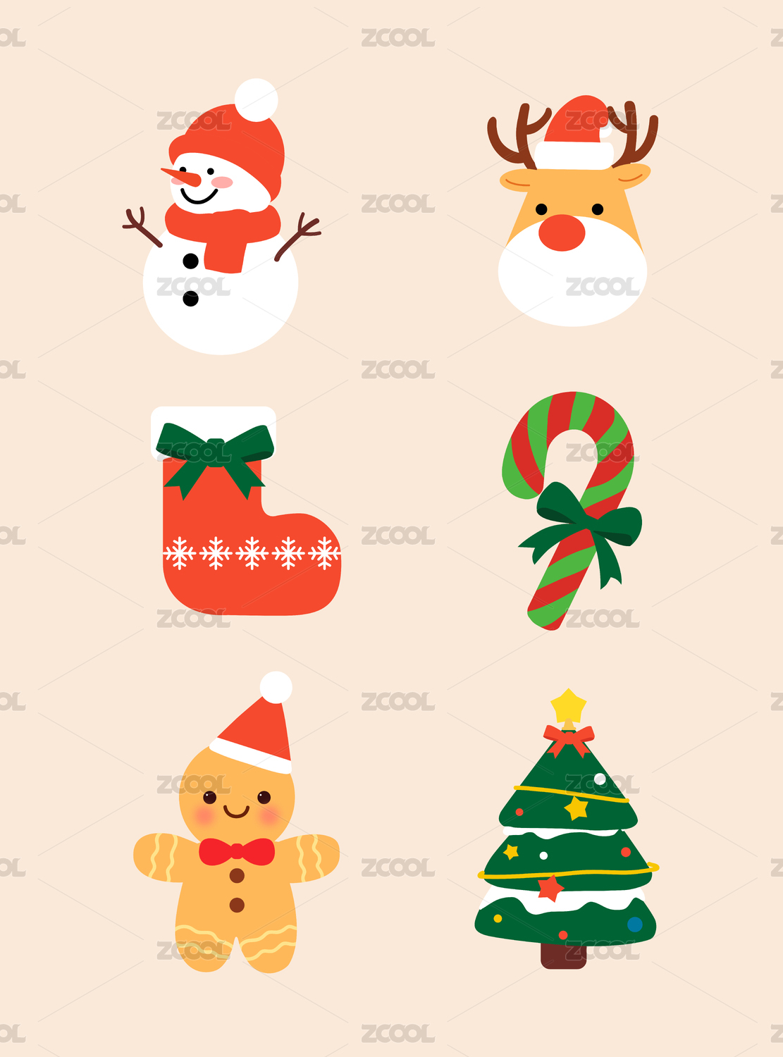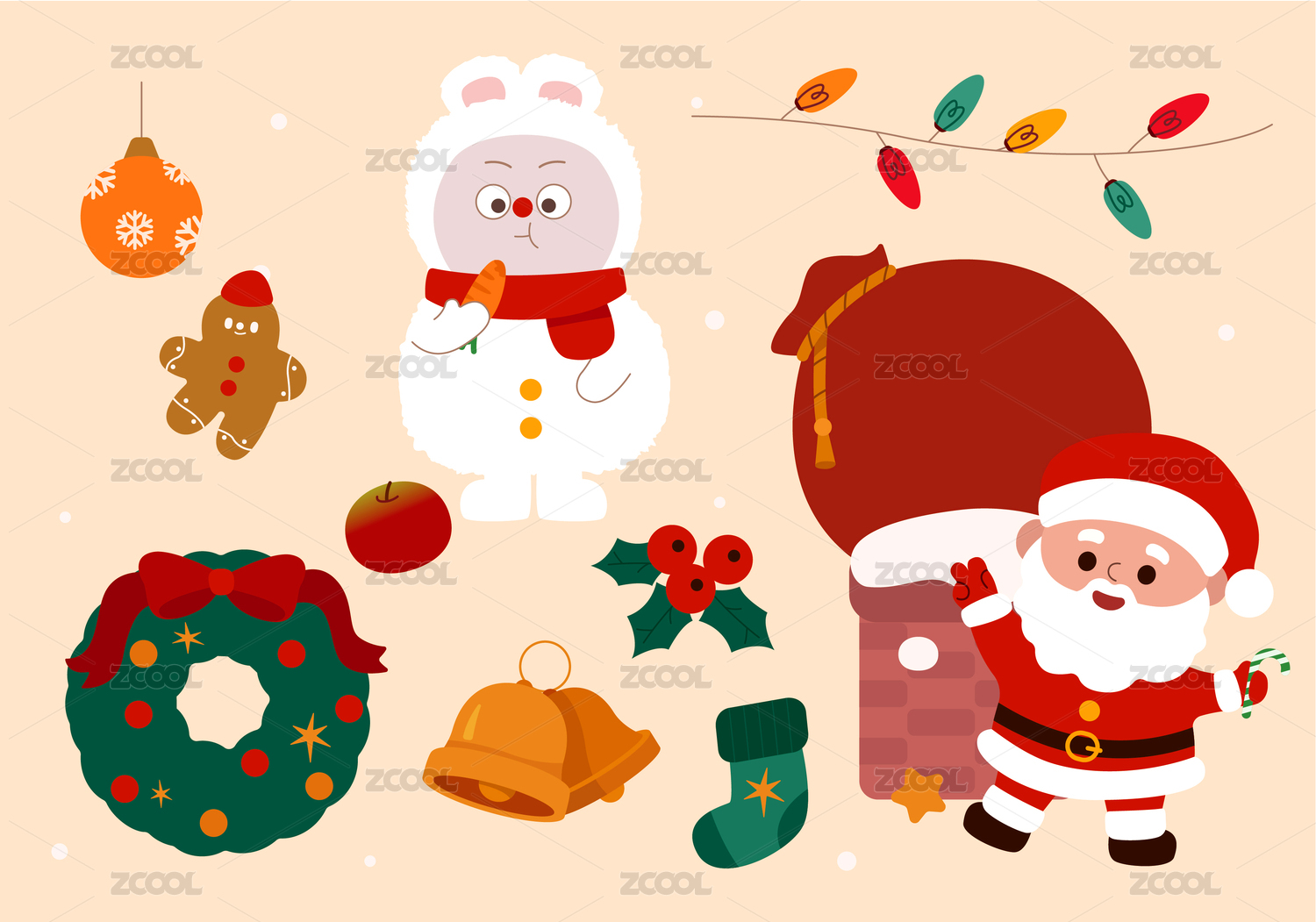 圣诞节平安夜可爱矢量插画元素海报节日活动