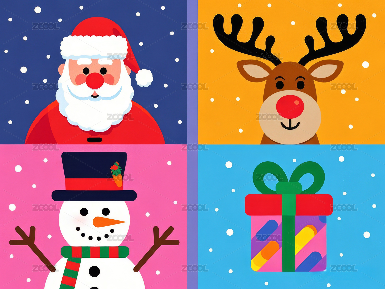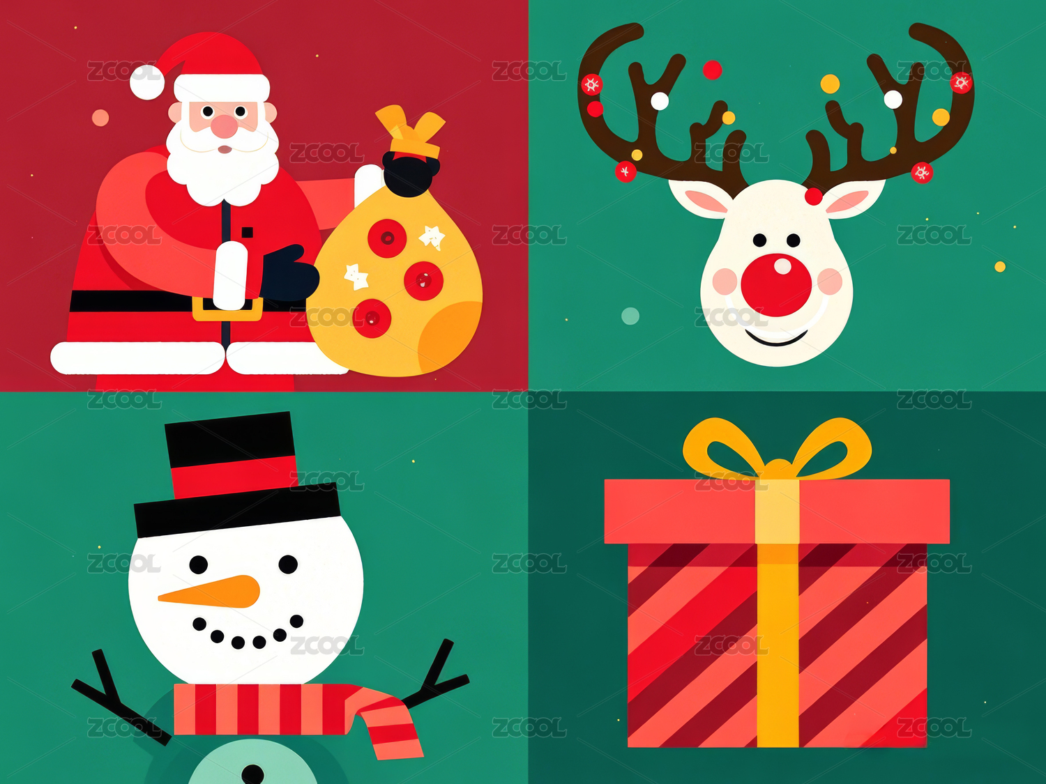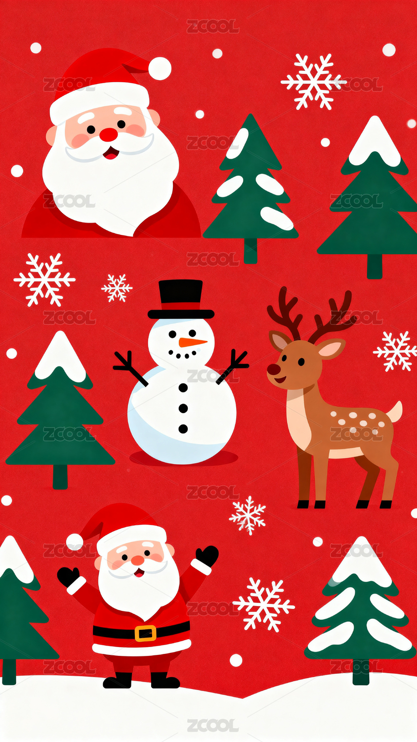 圣诞节平安夜可爱矢量插画元素海报节日活动