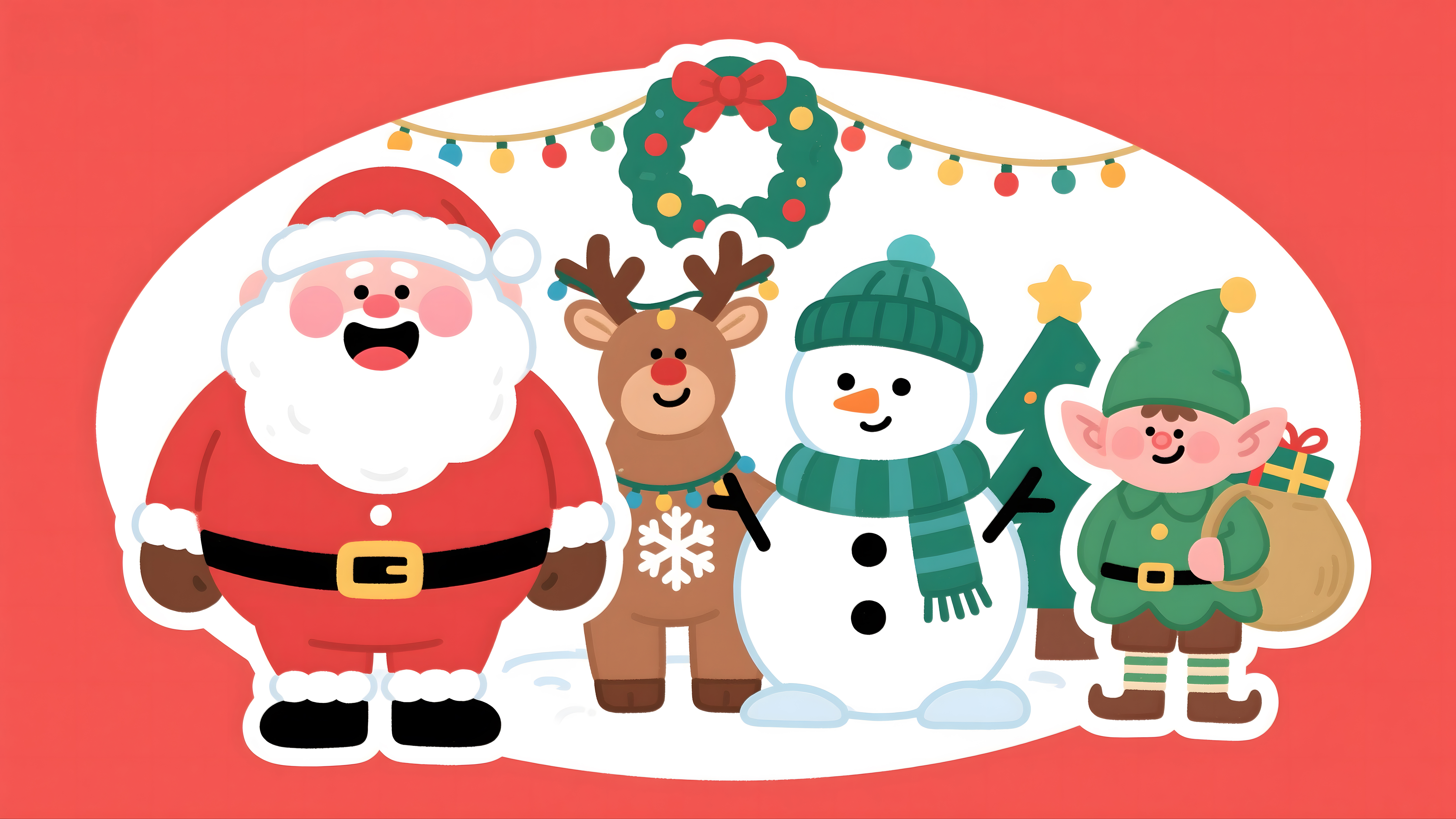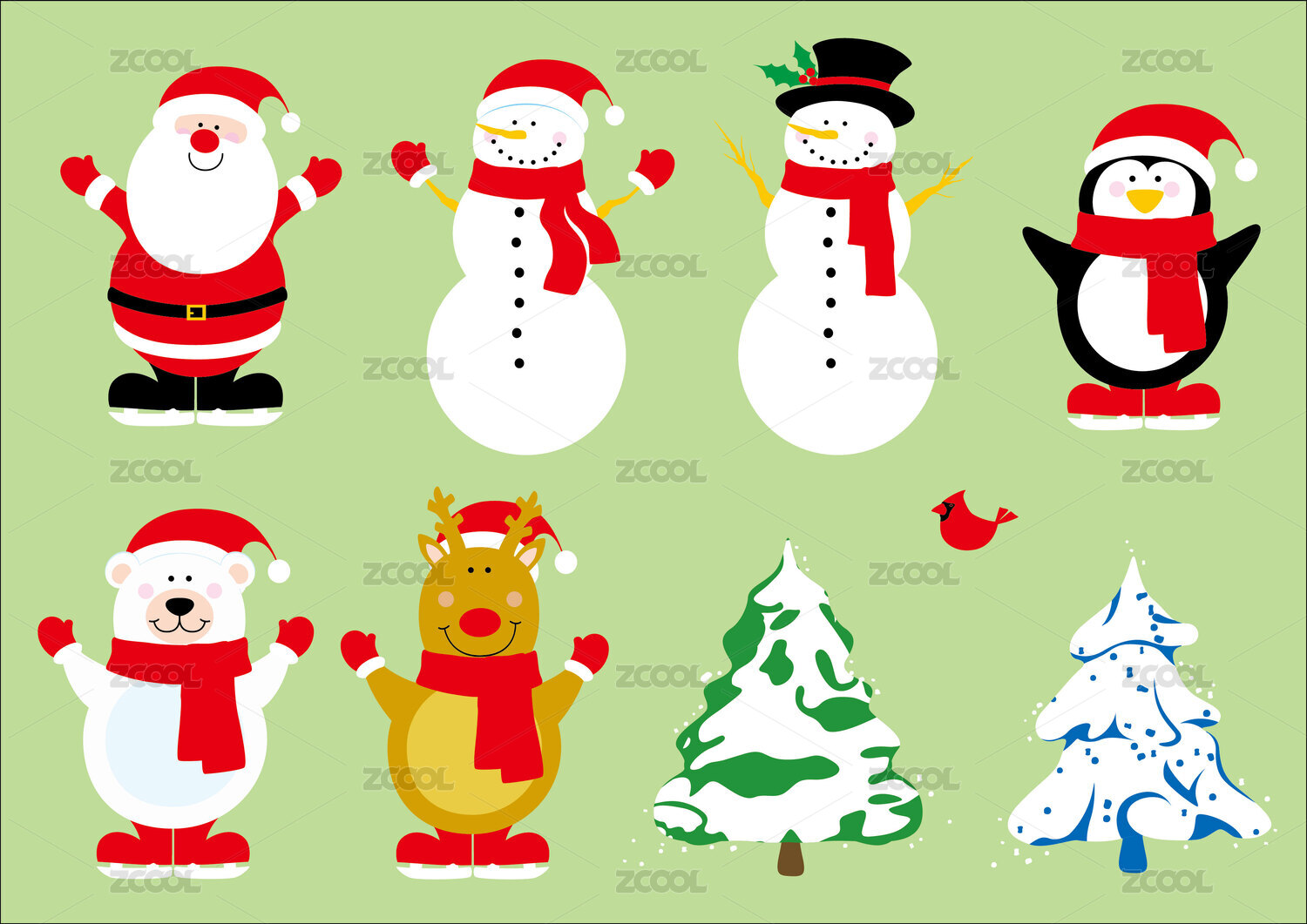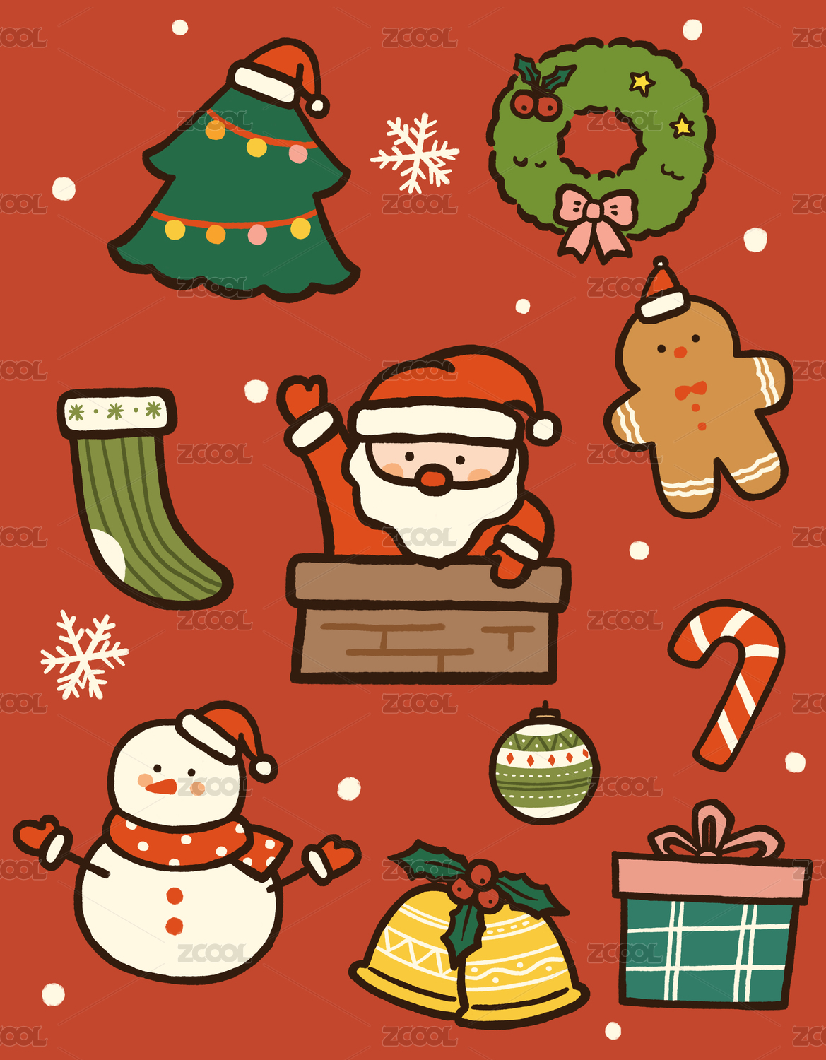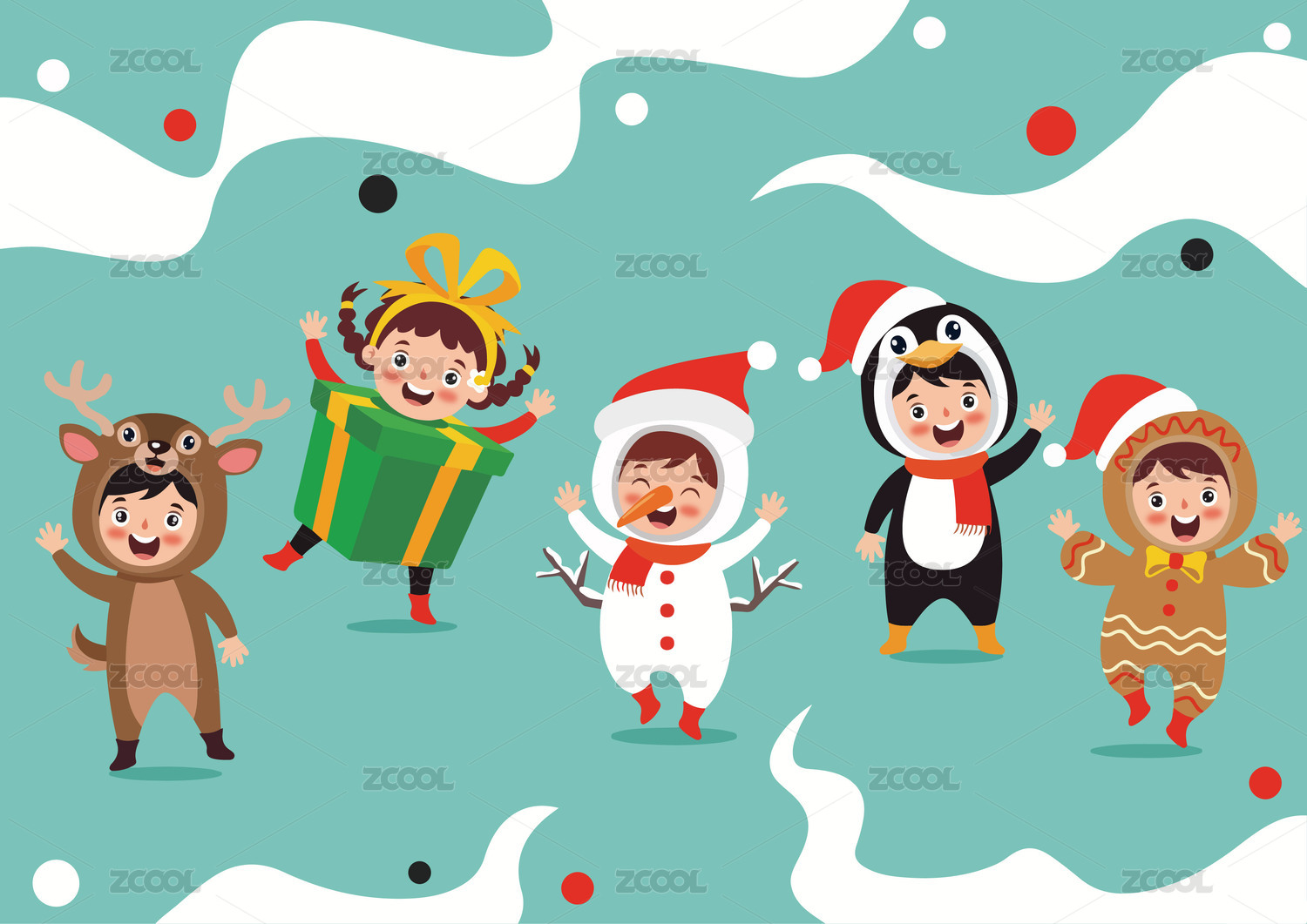 可爱卡通手绘风格圣诞节日小朋友宠物人偶服