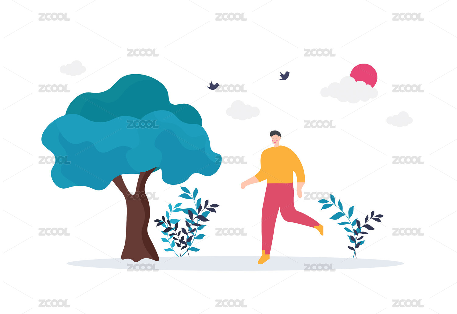 锻炼健康跑步的人物矢量互联网运营手绘插画