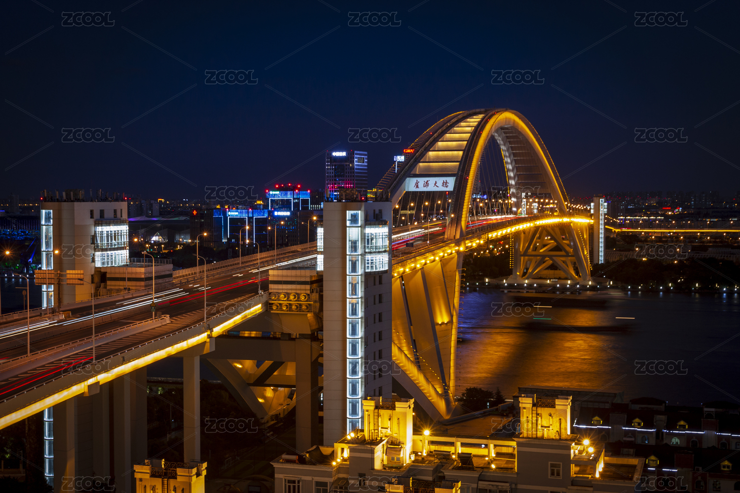 桥梁,建筑,灯光,卢浦大桥,彩虹桥,上海,黄浦江,蓝色,霓虹灯