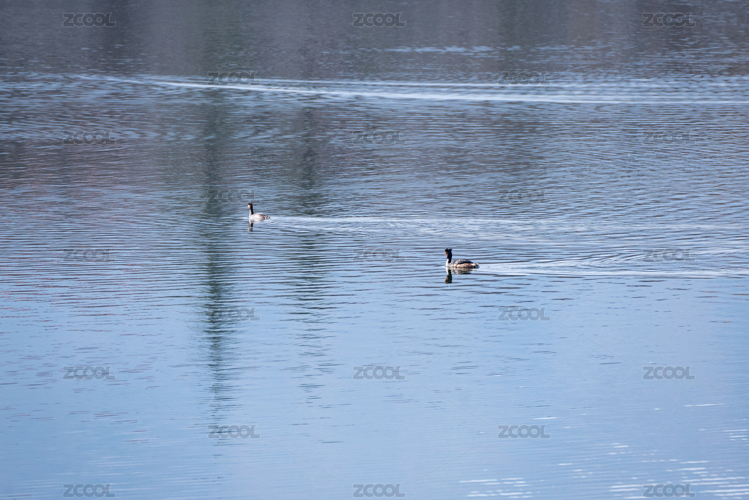 在湖中游走的两只白天鹅