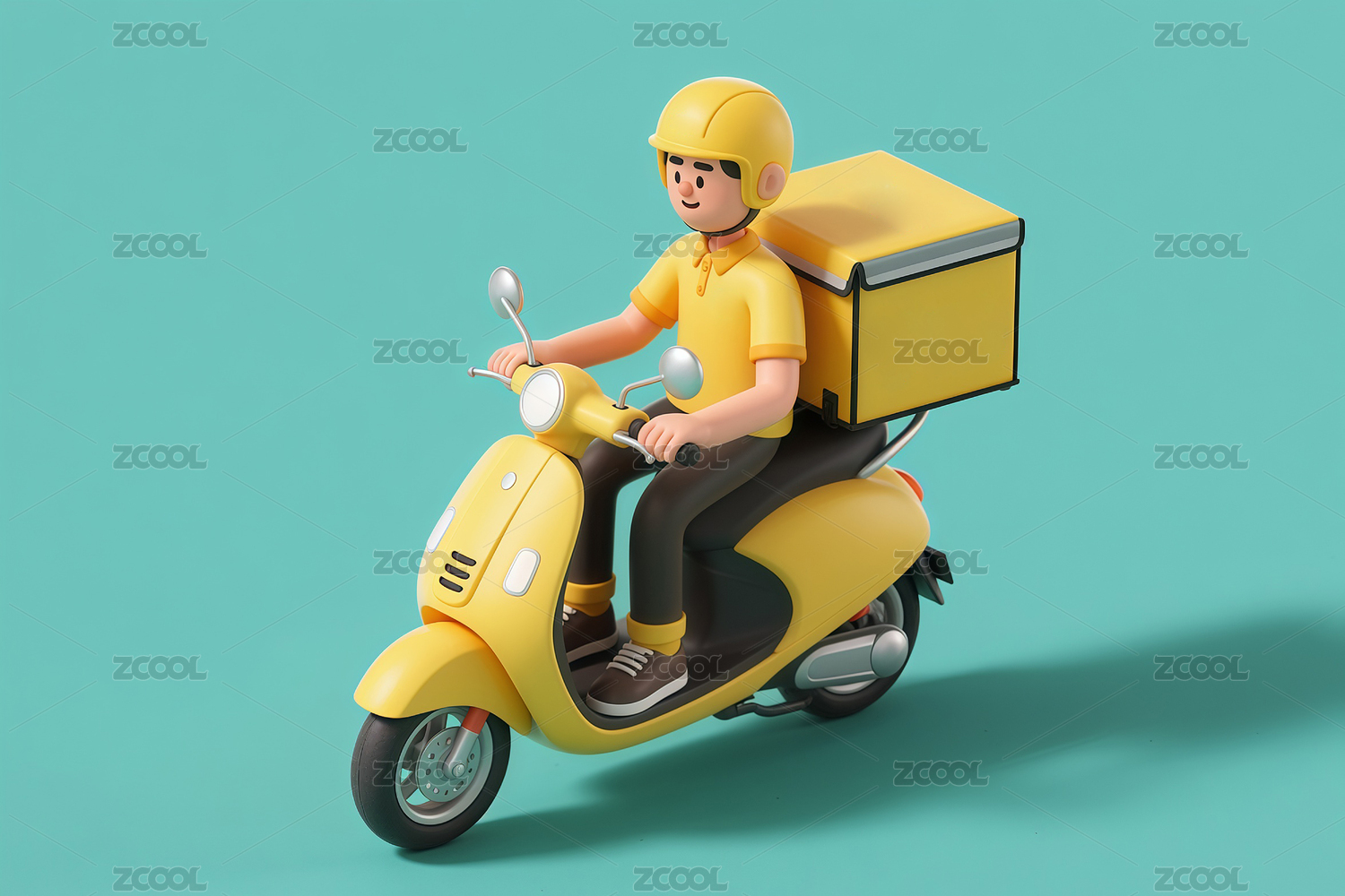 3D,可爱,卡通,三维,模型,快递,摩托车,安全帽,电动车,快递员
