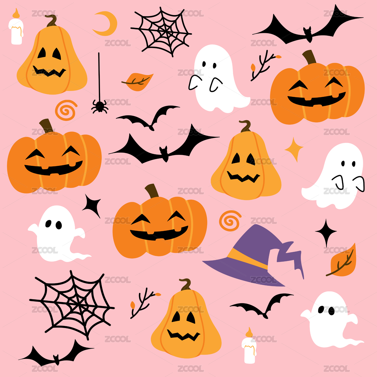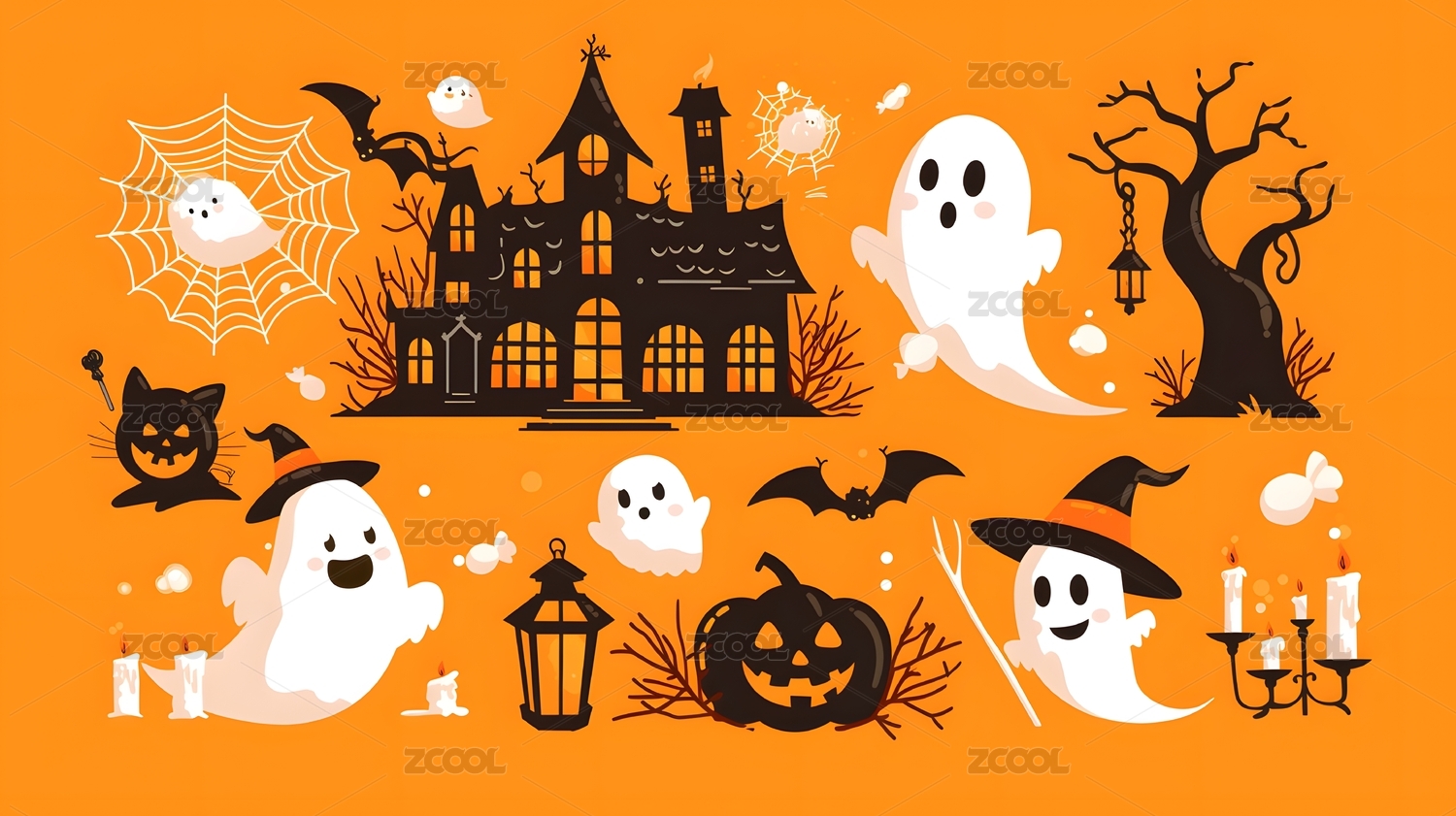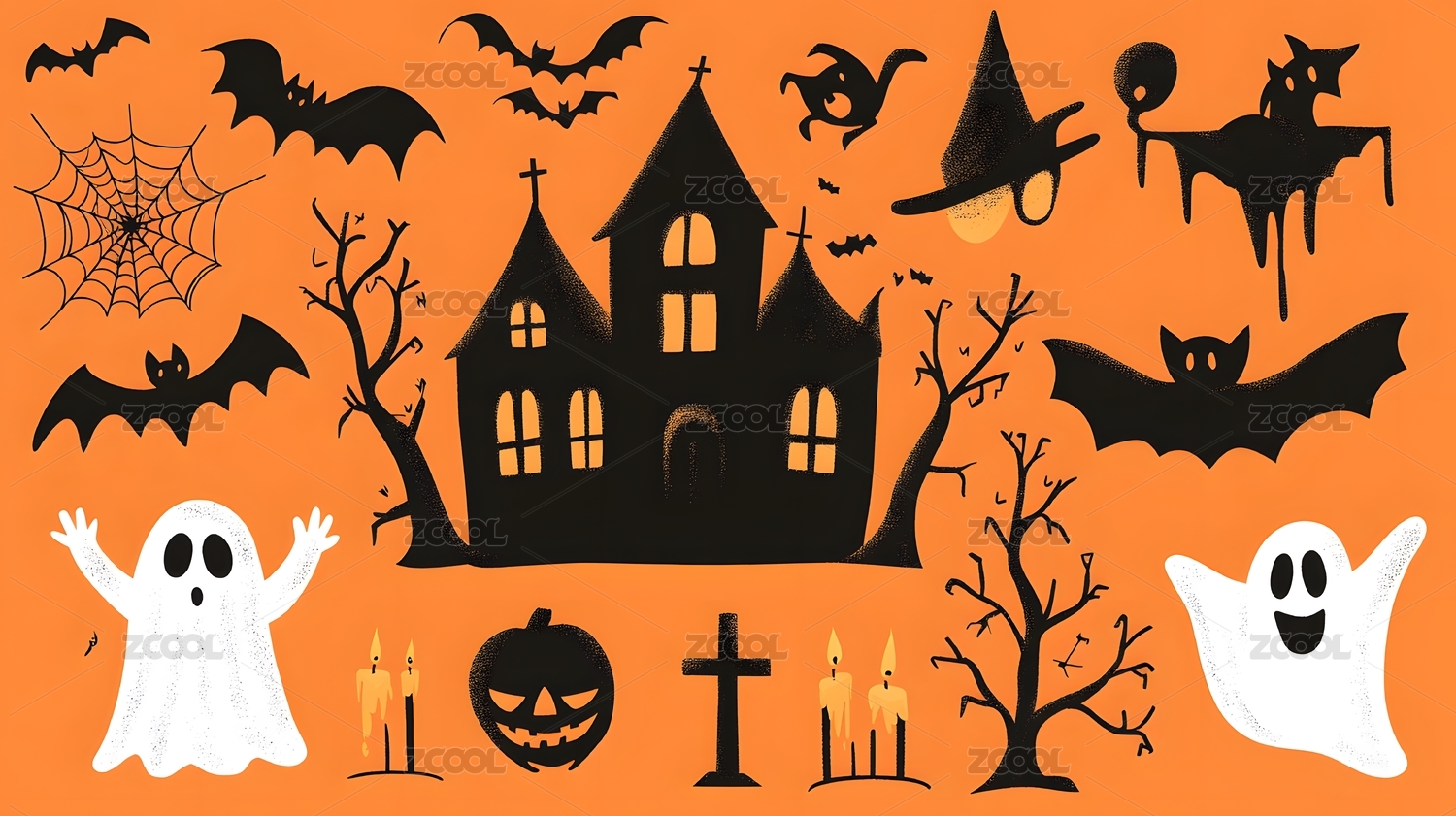 万圣节幽灵南瓜蜘蛛月亮叶子蝙蝠帽子