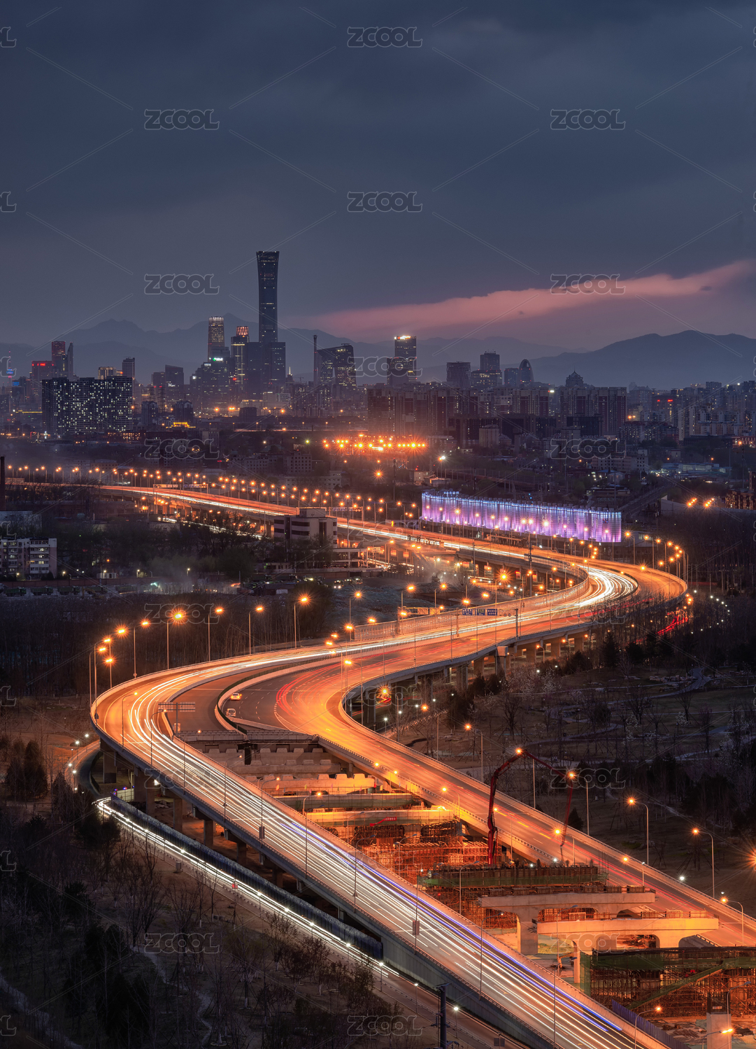 北京傍晚城市灯光交通车流CBD建筑群立交桥
