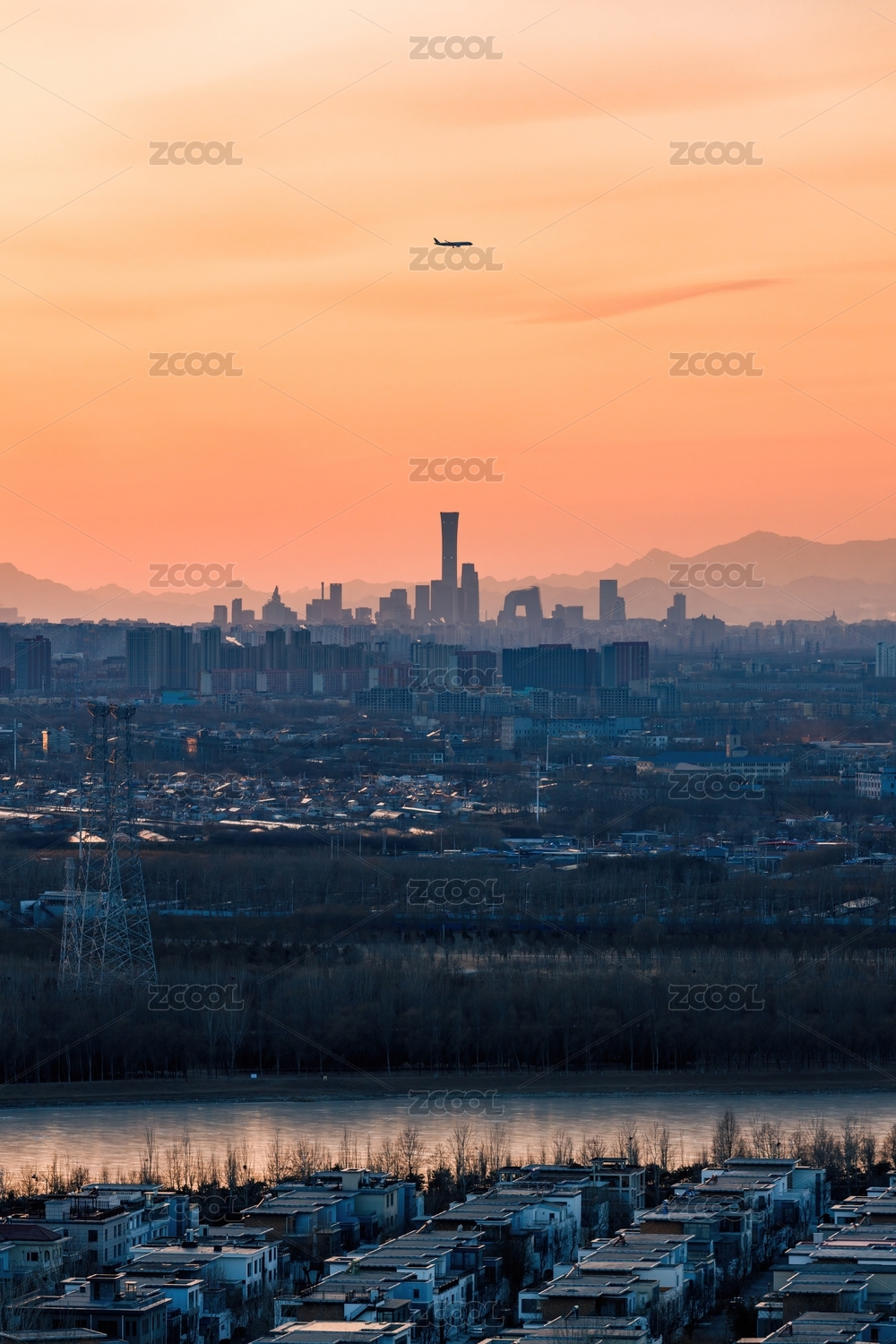 通州远眺国贸中国尊日落金色时刻与蓝调夜景