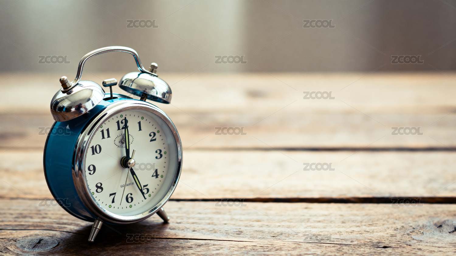 复古闹钟置于木质桌面
