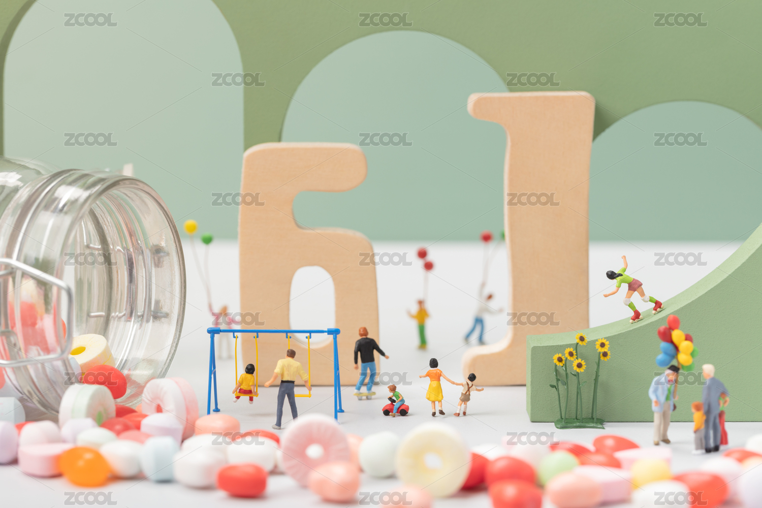 六一儿童节糖果气球孩子快乐玩耍积木数字6