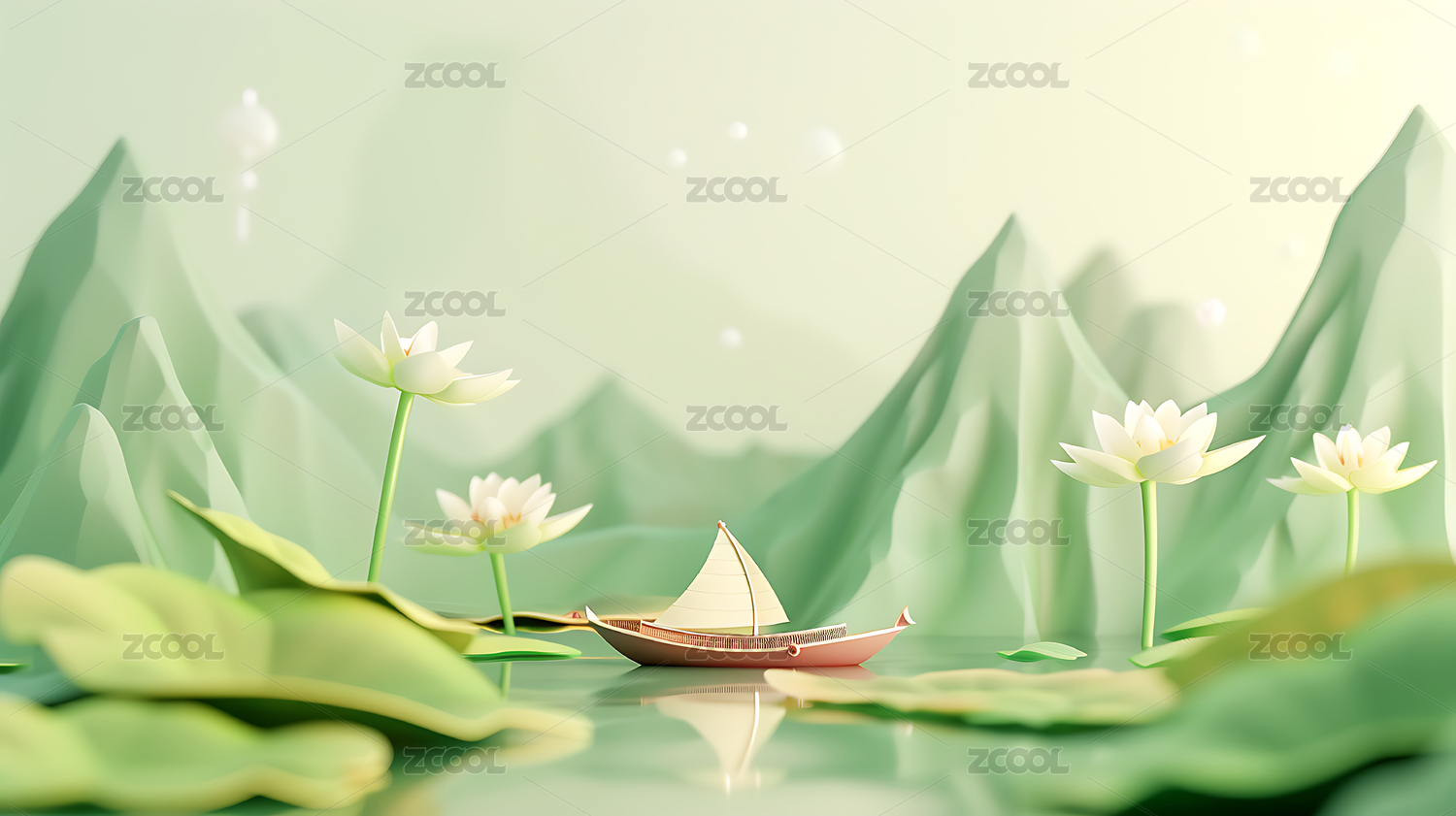 3D夏天立夏节气避暑划船暑假出行概念插图