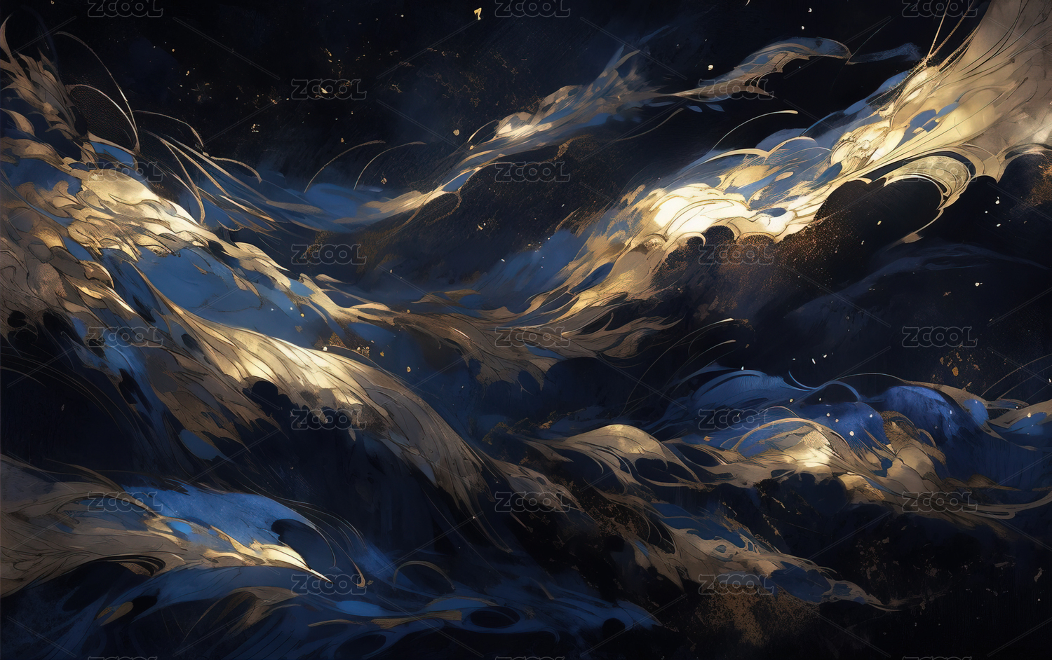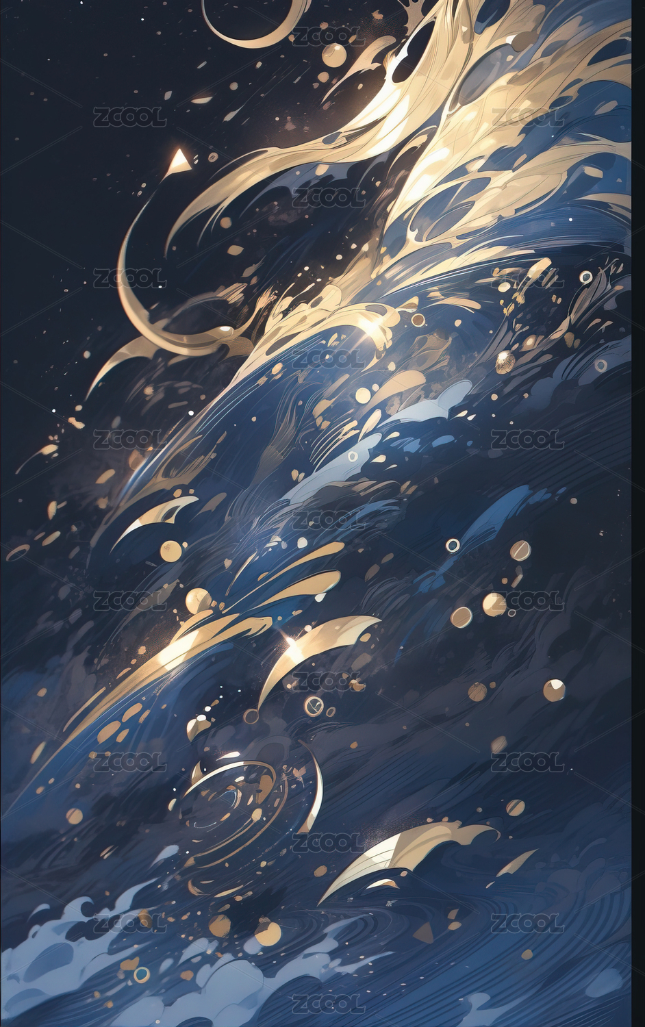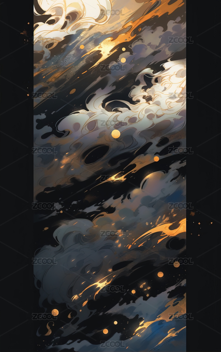冷色调,动漫,风格,抽象,二次元,金箔,矿物颜料,天空,云,美丽