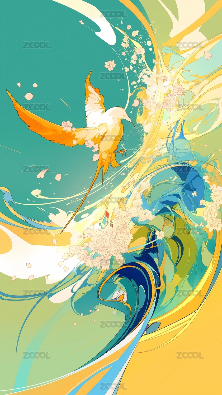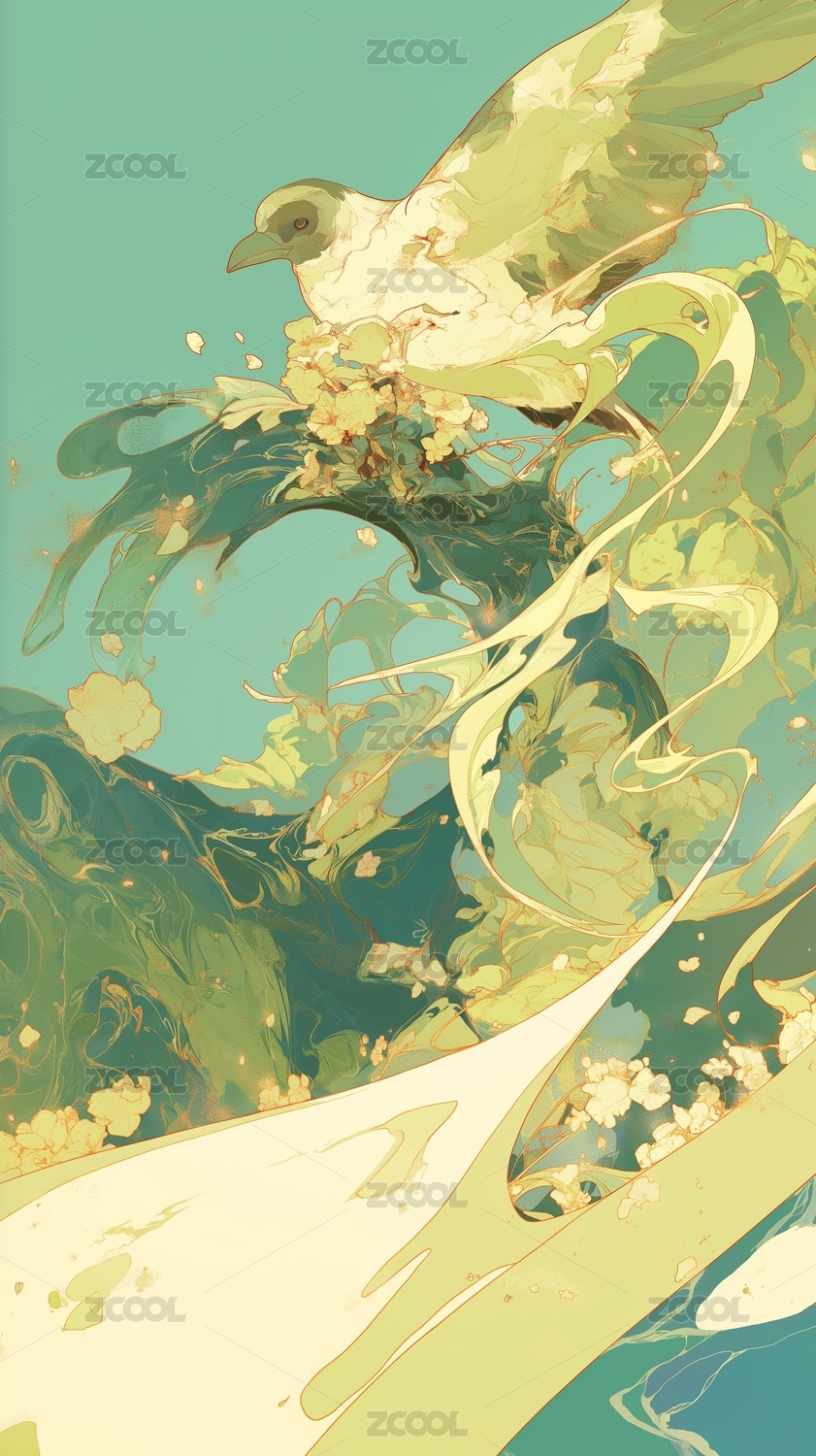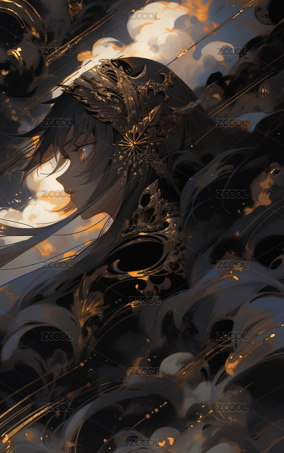 冷色调,动漫,风格,抽象,二次元,金箔,矿物颜料,天空,云,美丽