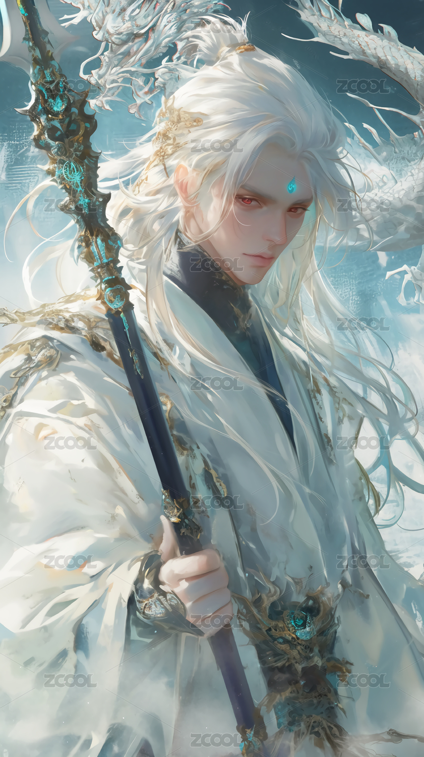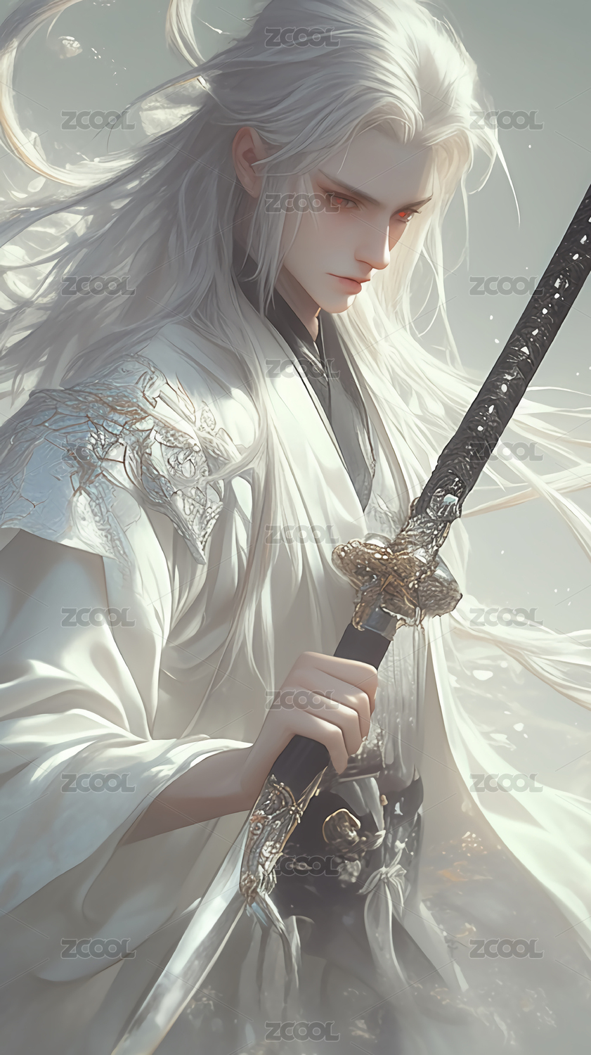 仙侠,男子,持剑,武士,侠客,帅,炫酷,汉服,烟雾,水墨