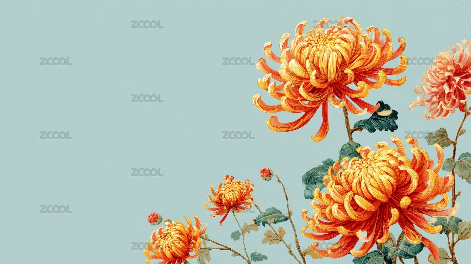 秋天菊花重阳节中秋节国潮风格鎏金插画