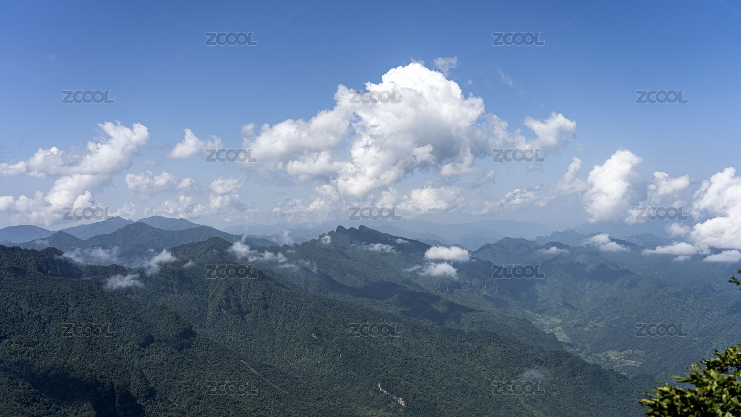 中国四川眉山洪雅瓦屋山山顶密林和周边群山