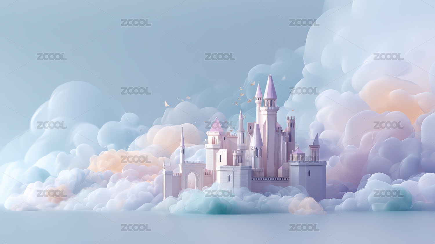 3D卡通,背景,白云,蓝色,城堡,建筑