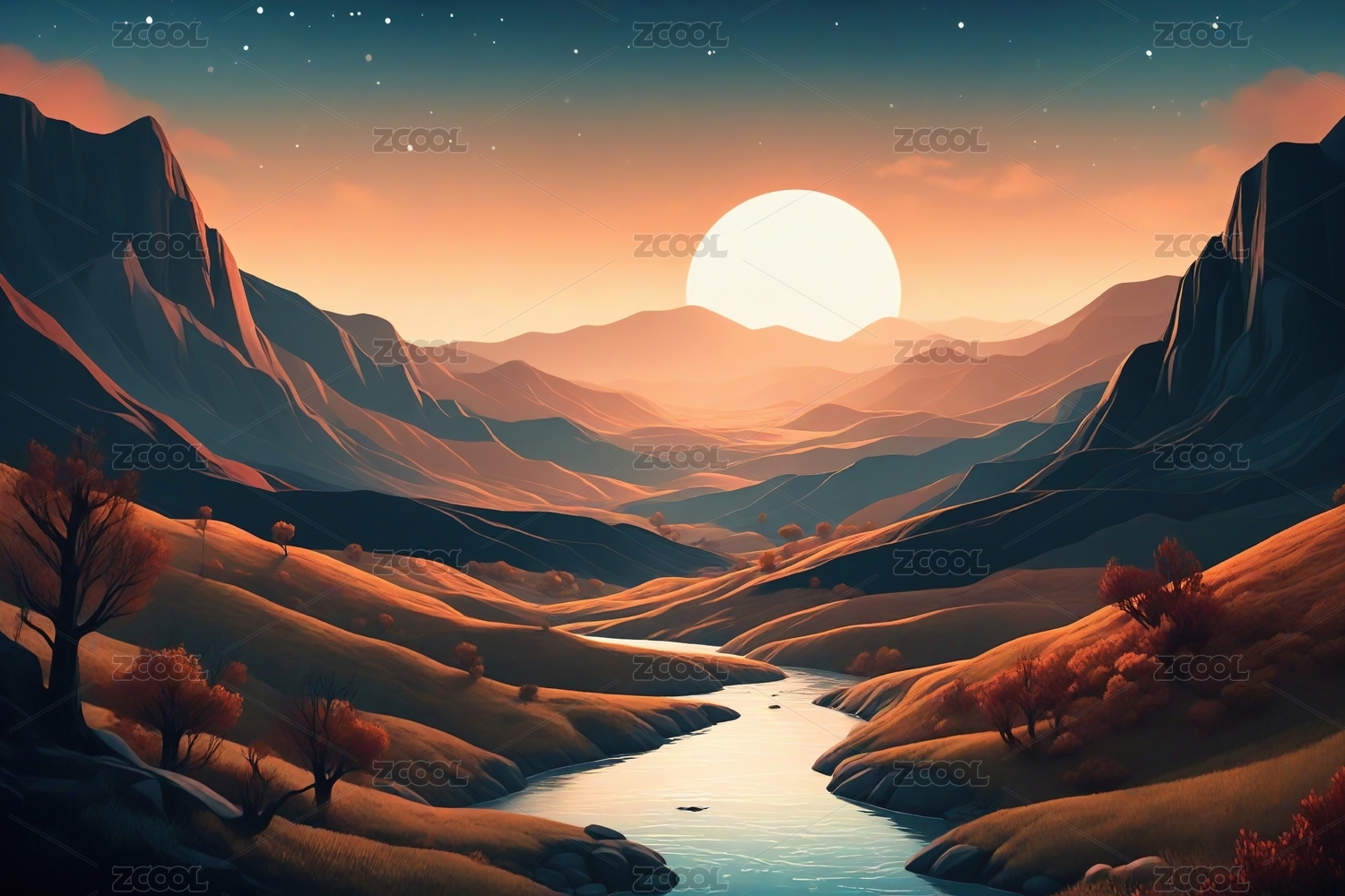 山间河流的黄昏