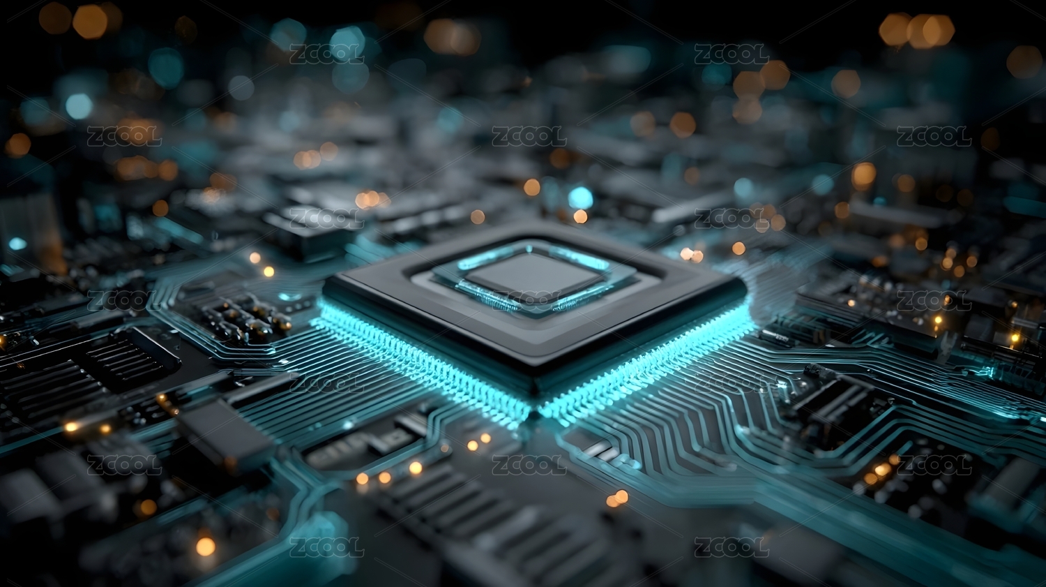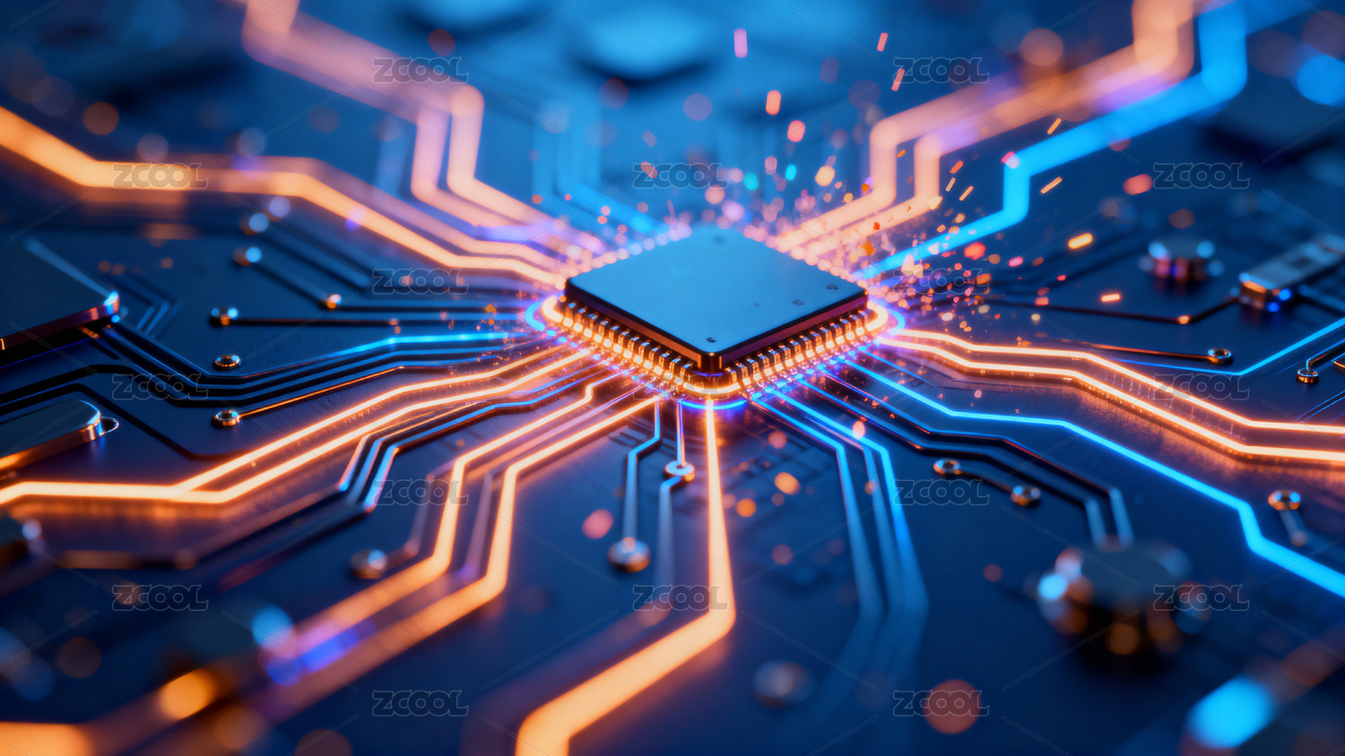 芯片蓝橙质感科技电路场景