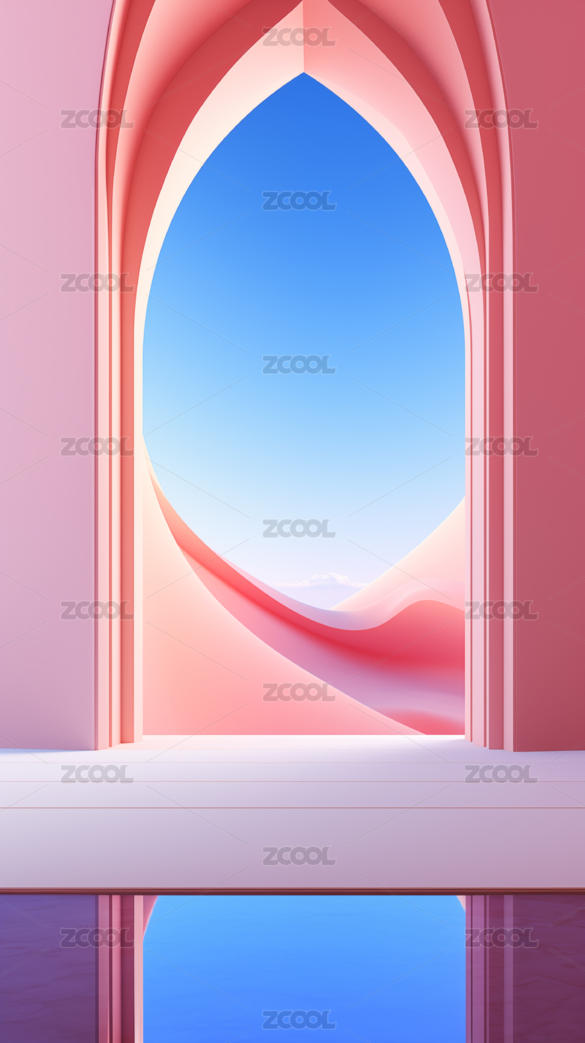 未来,窗户,粉色,沙漠,山脉,空间,设计,幻想,科幻,几何