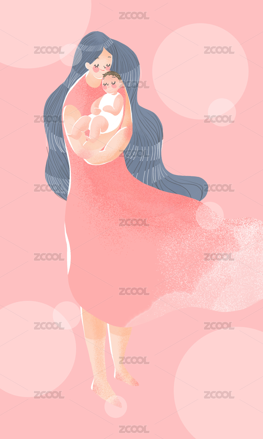 母亲节妈妈抱着婴儿萌宝插画矢量图