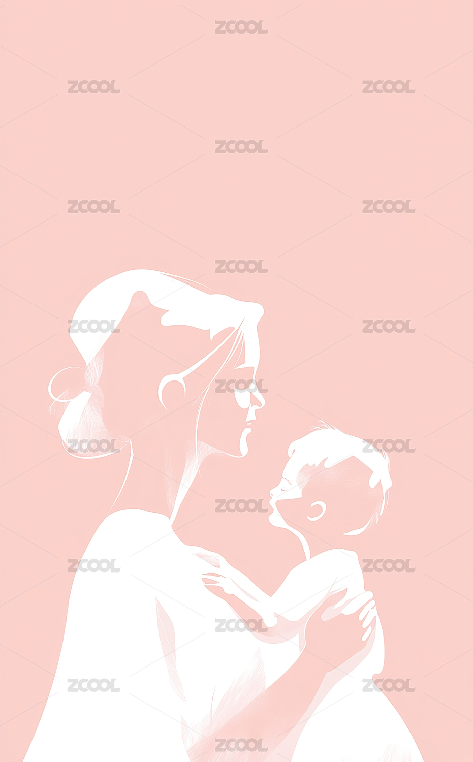 妈妈抱着小孩眼里充满爱母亲节矢量插画海报