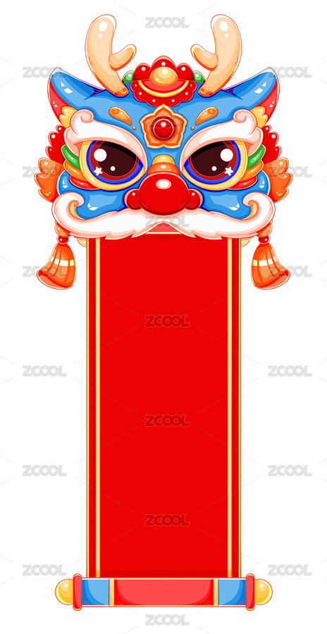 卡通2020鼠年狮子头庆祝中国风背景矢量插画