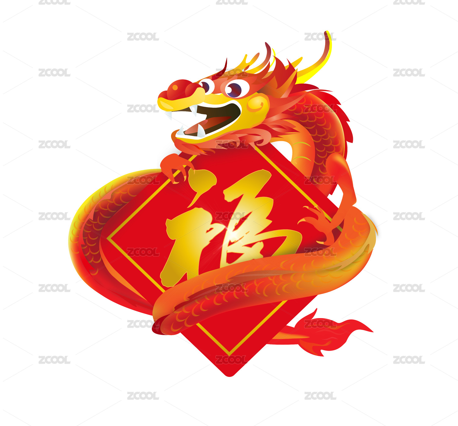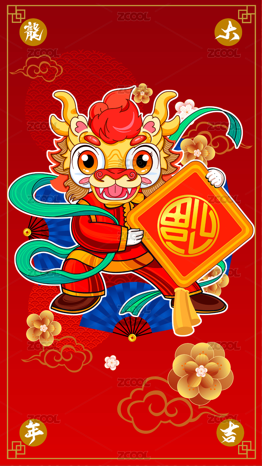 国潮龙年春节新年龙头圆形春晖门贴插画