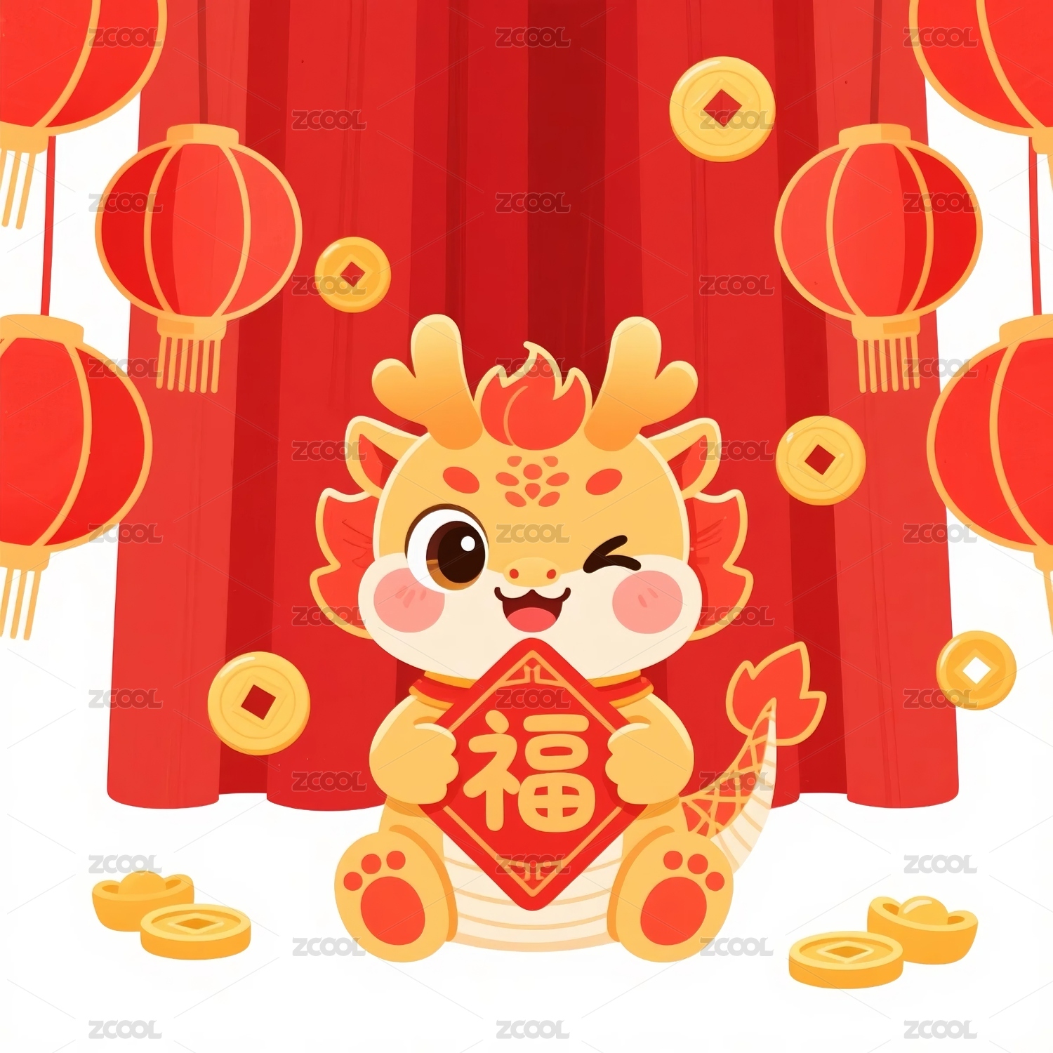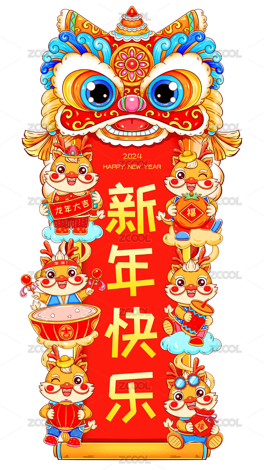 新年灯笼舞狮元素,可以自行加文字和祝福语
