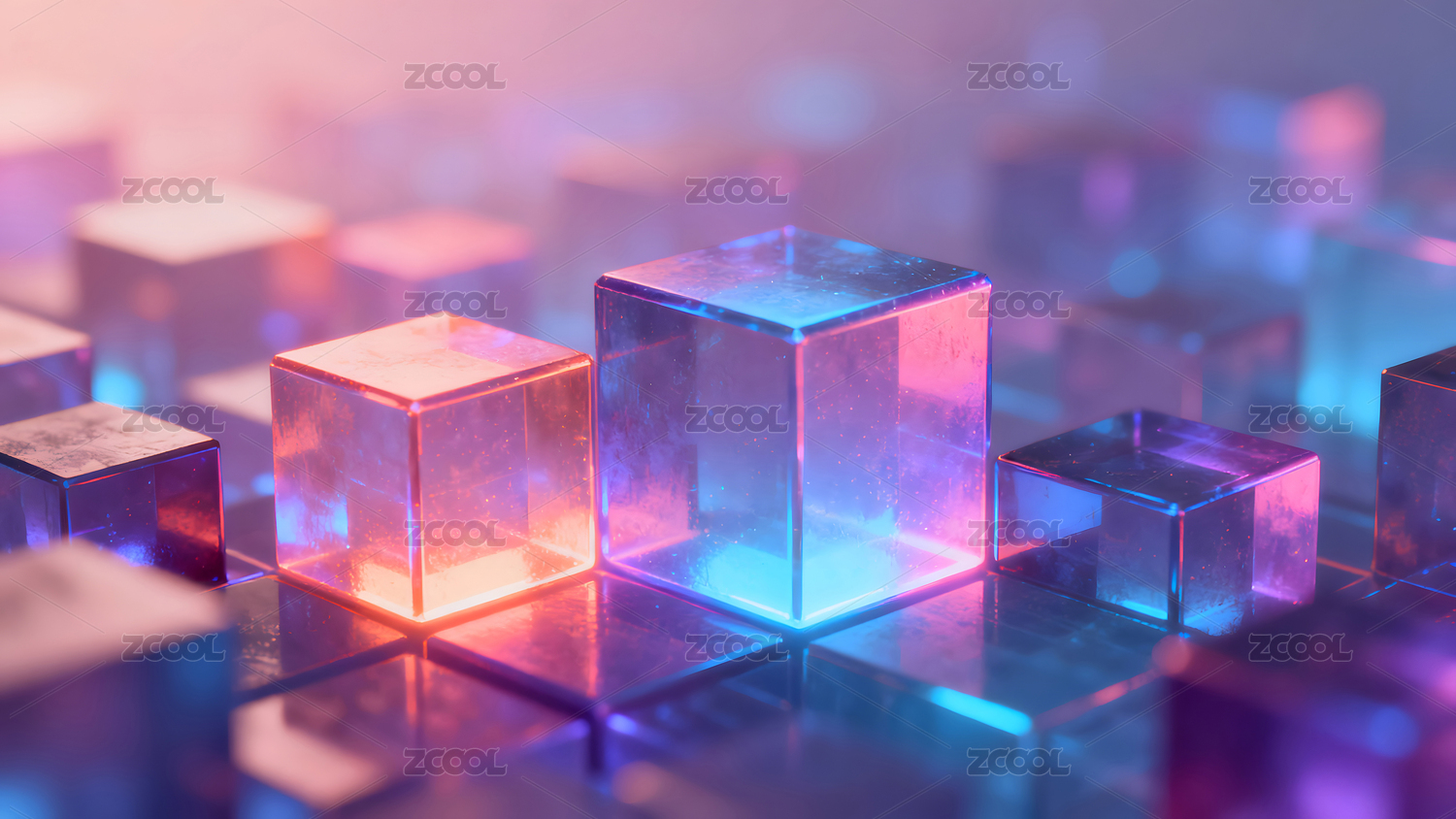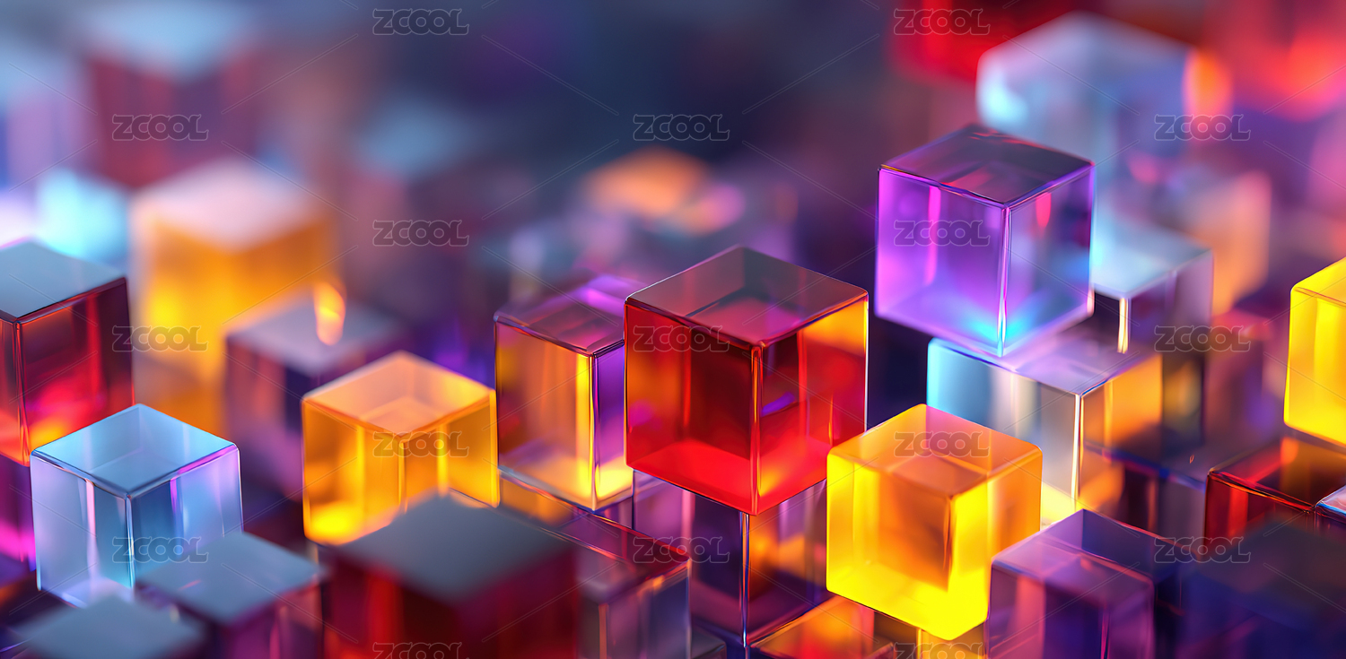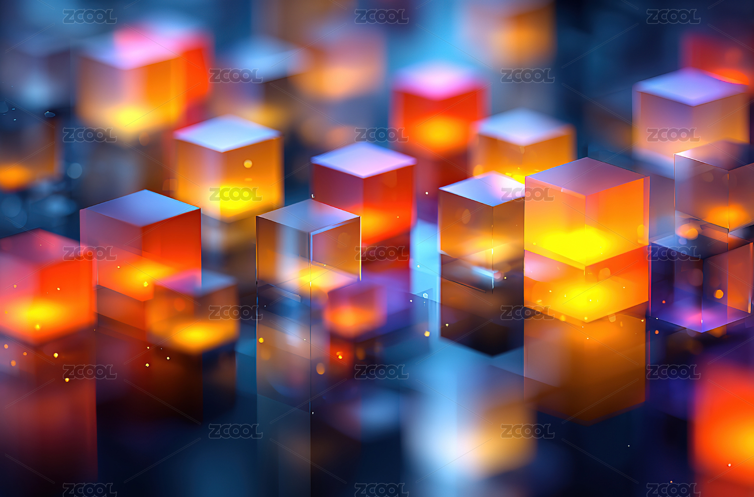 立方体,彩色,矩阵,光线,反射,透明,晶体,蓝色,紫色,橙色