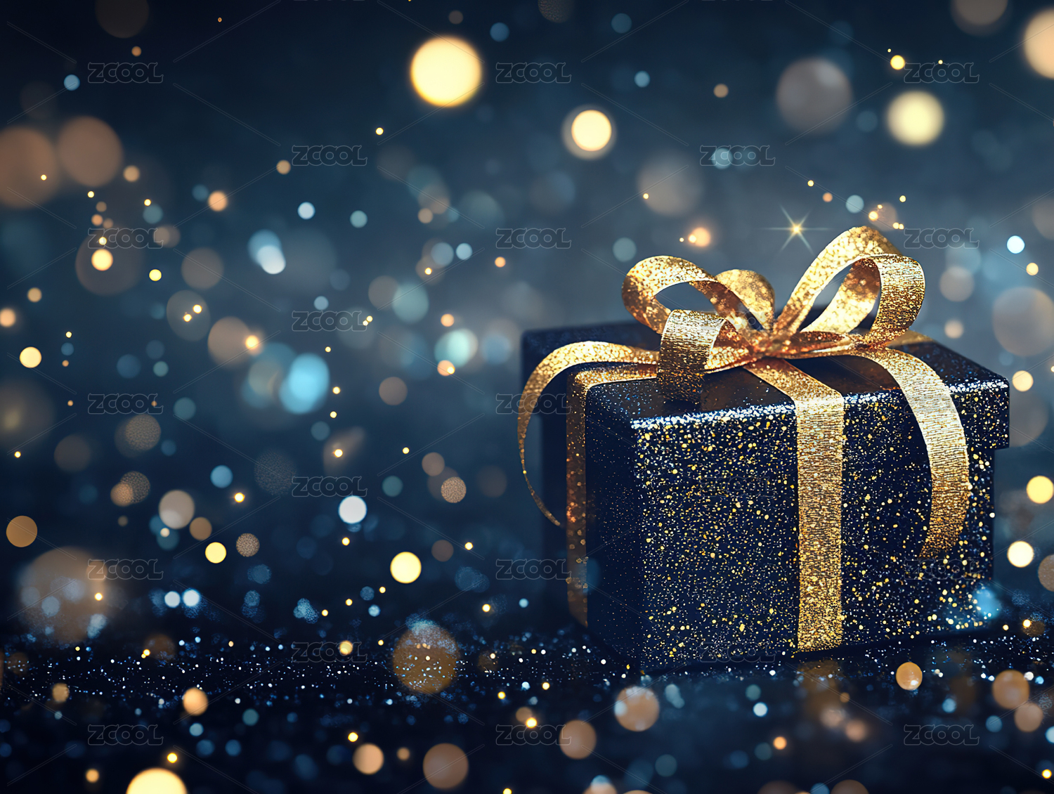 黑色礼盒与金色丝带,奢华闪耀的节日气氛