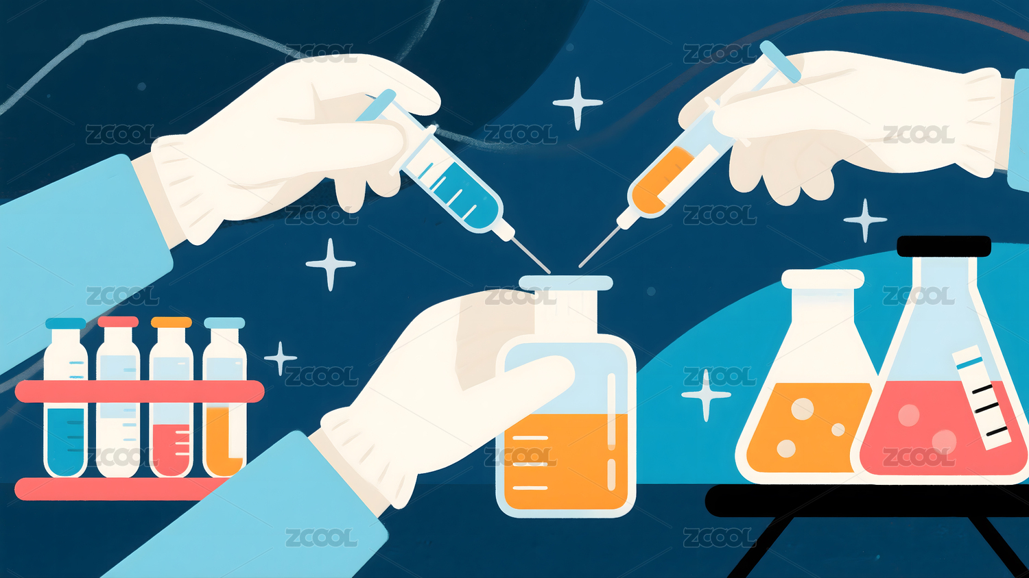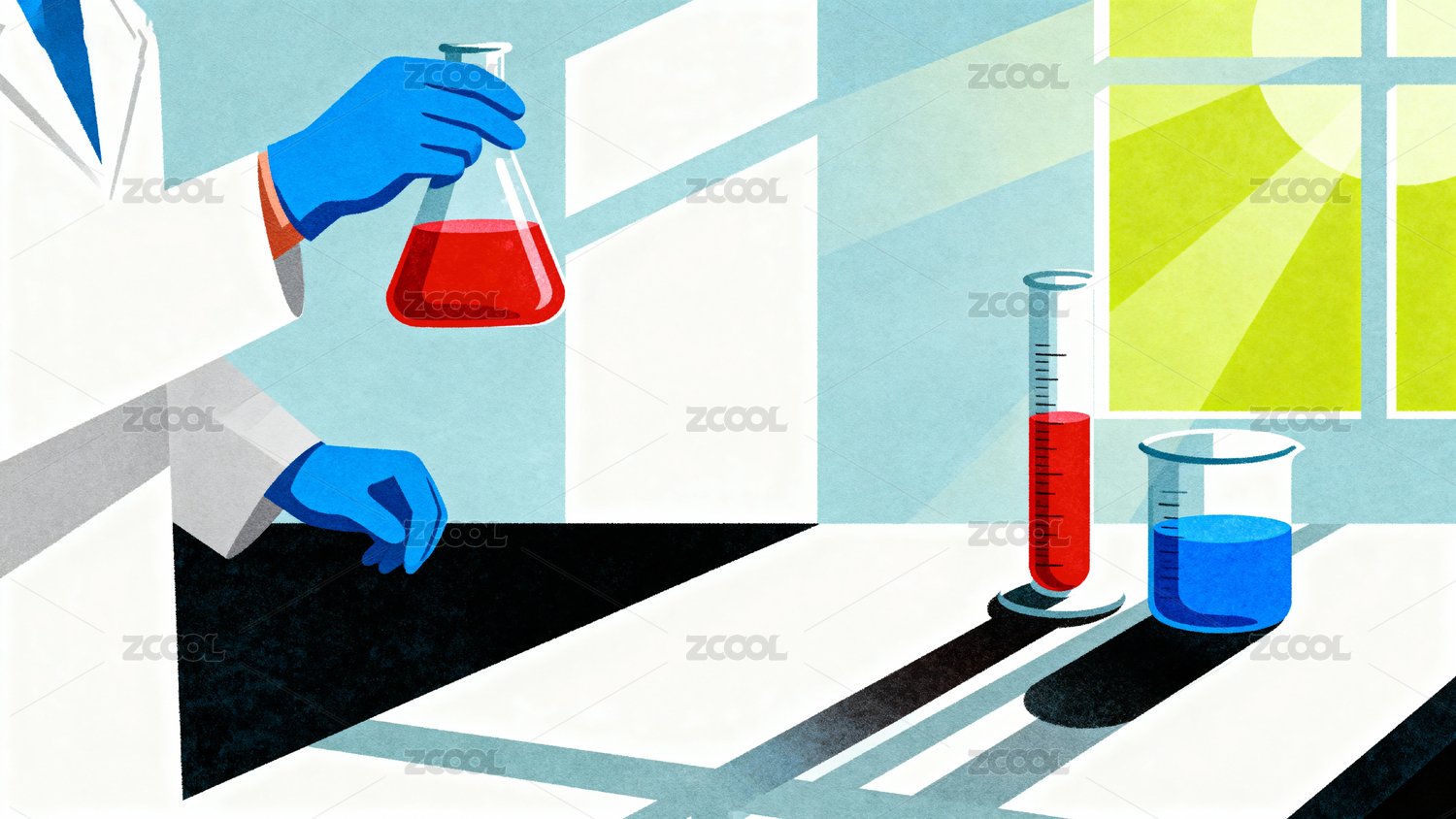 医疗戴手套的手拿有液体的试管平面扁平插画