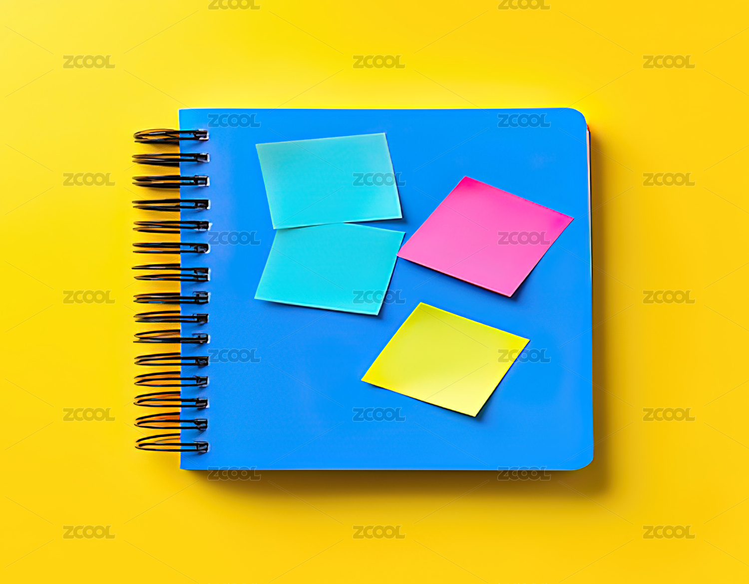 本子和便利贴在黄色的背景上