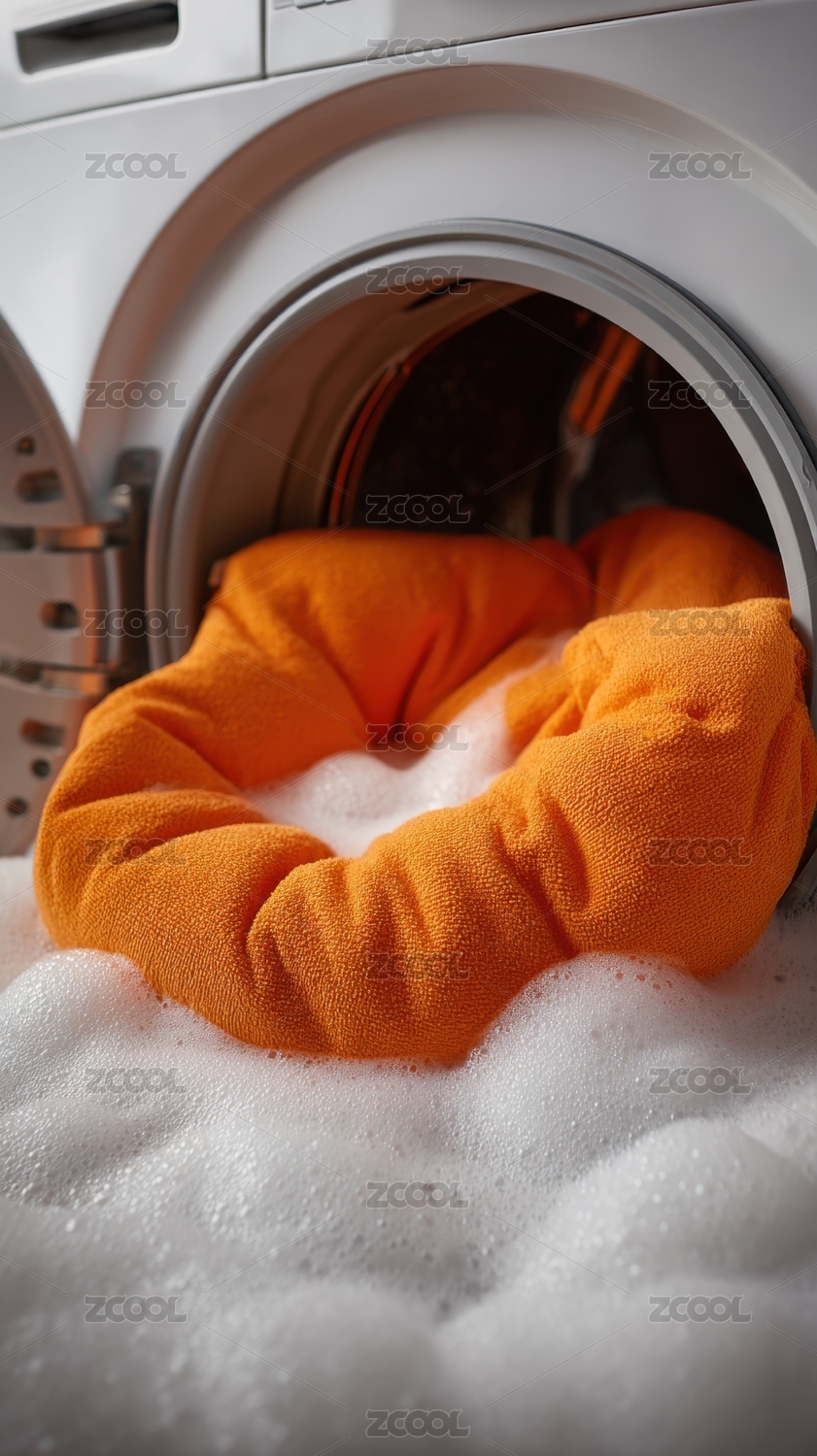打开的滚筒洗衣机,里面放满待洗的衣物