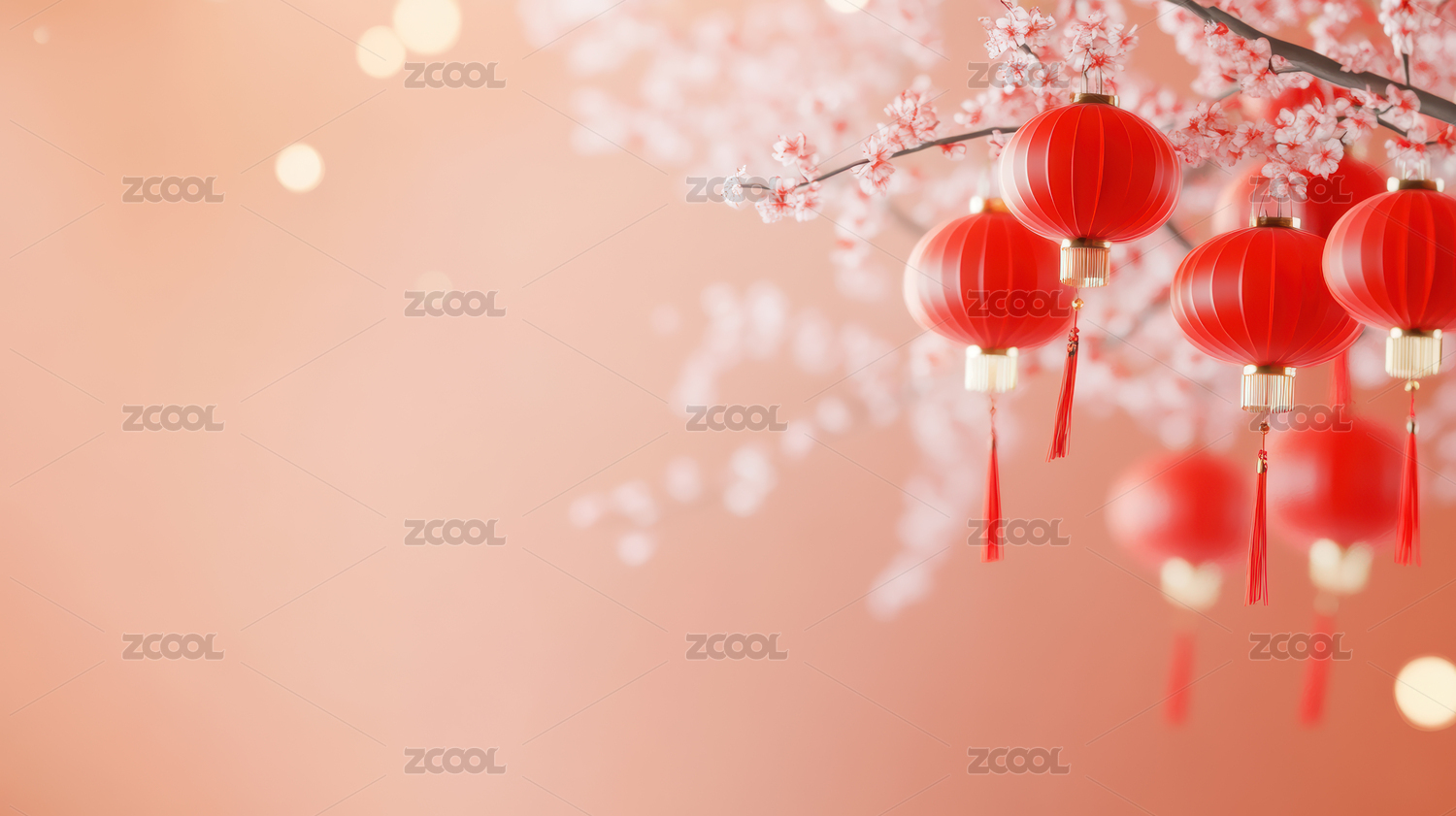新年红灯笼与桃花