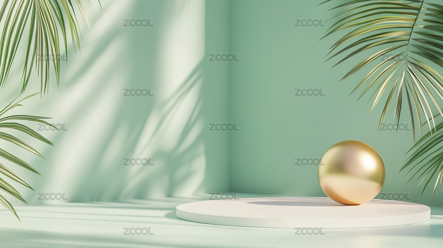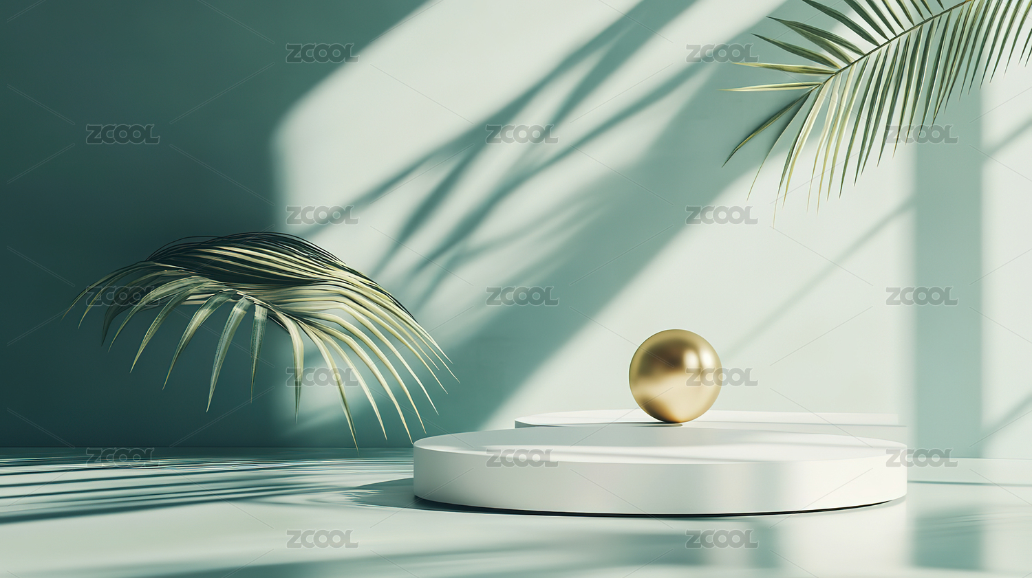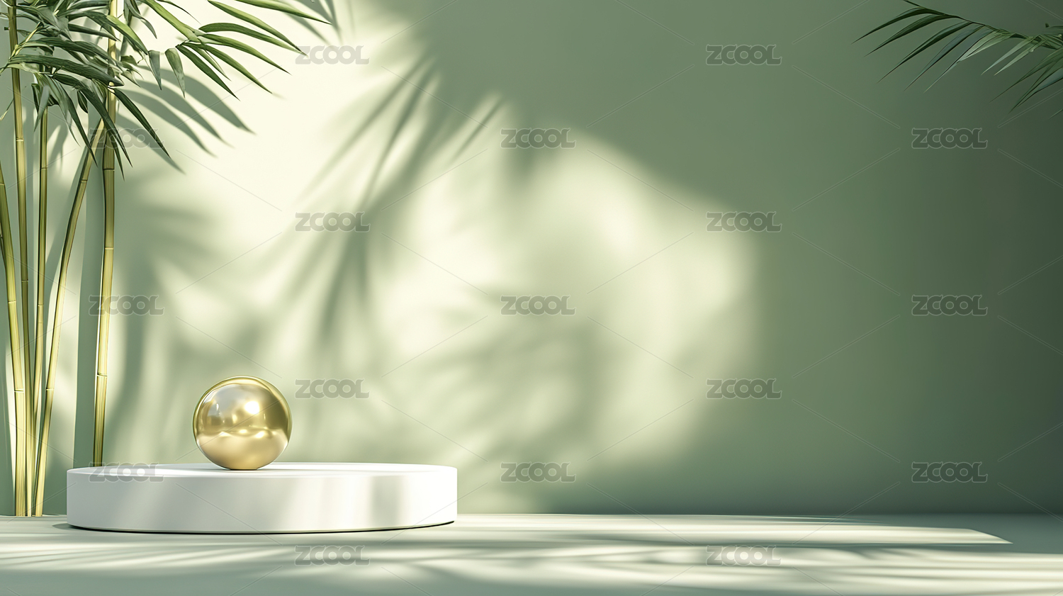 3D渲染静物产品展示台,绿色植物电商产品