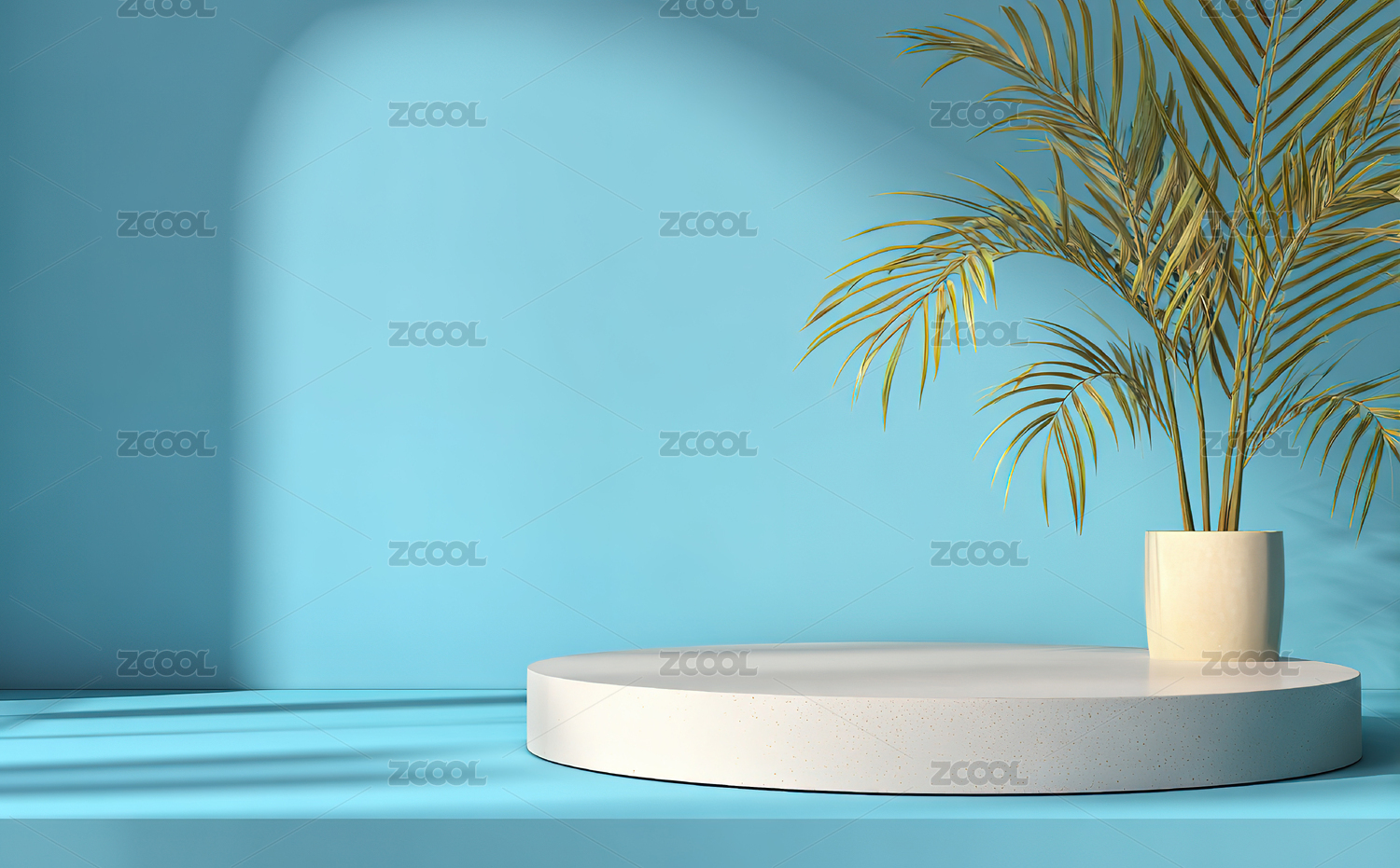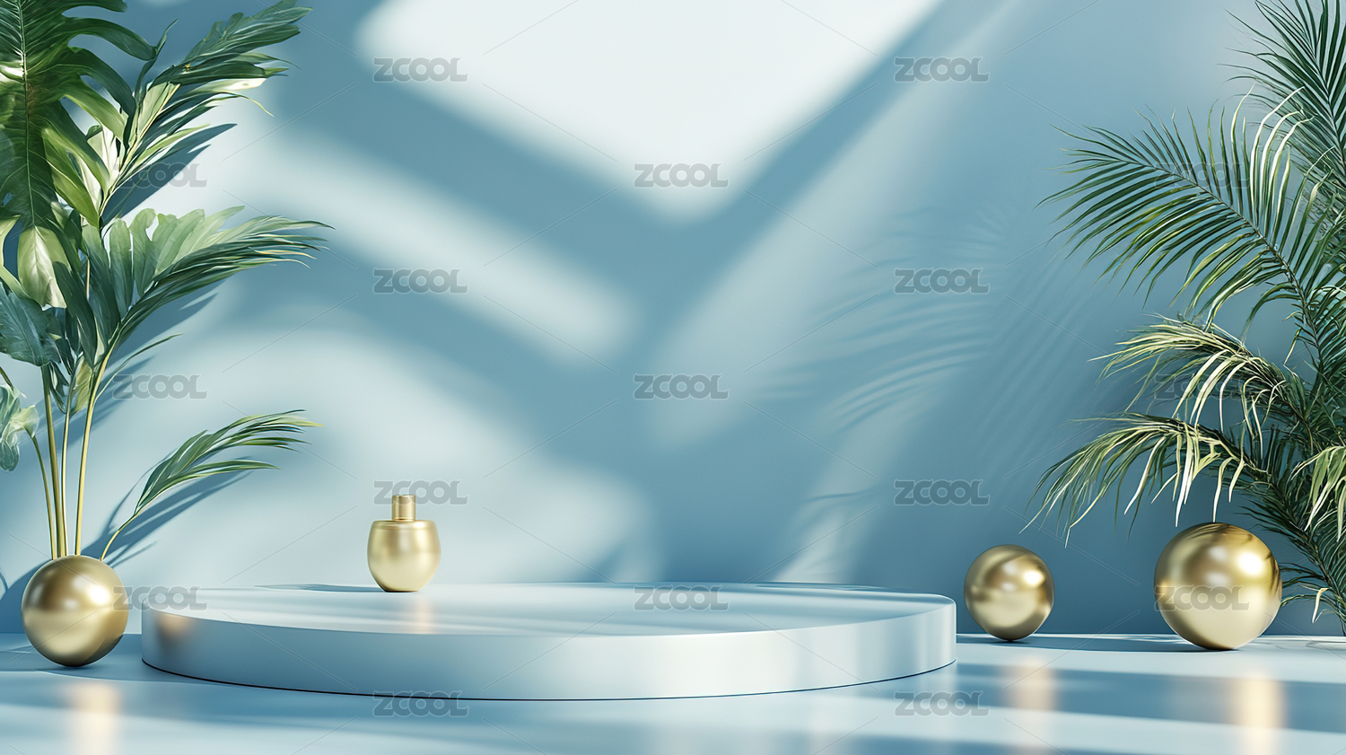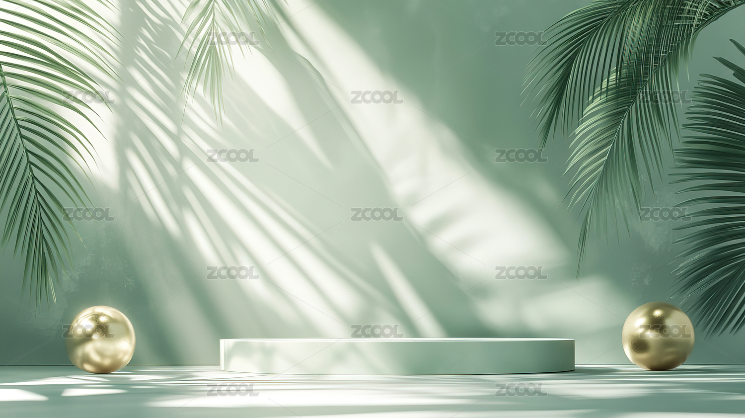 3D渲染静物产品展示台,绿色植物电商产品