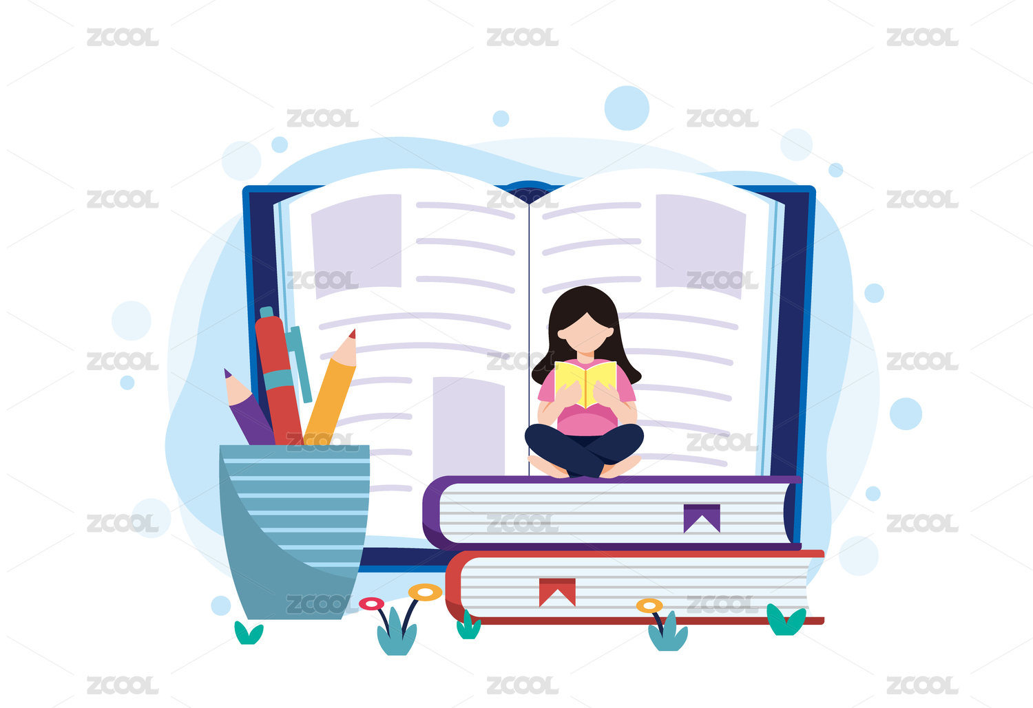 世界读书日阅读人物扁平矢量概念运营手绘插