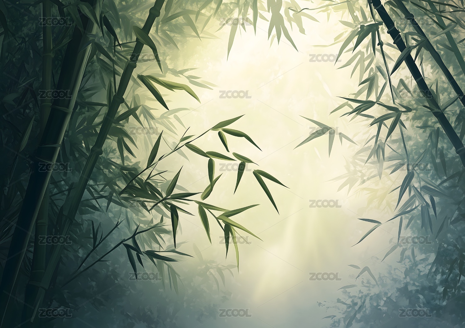 唯美春天竹林手绘插画