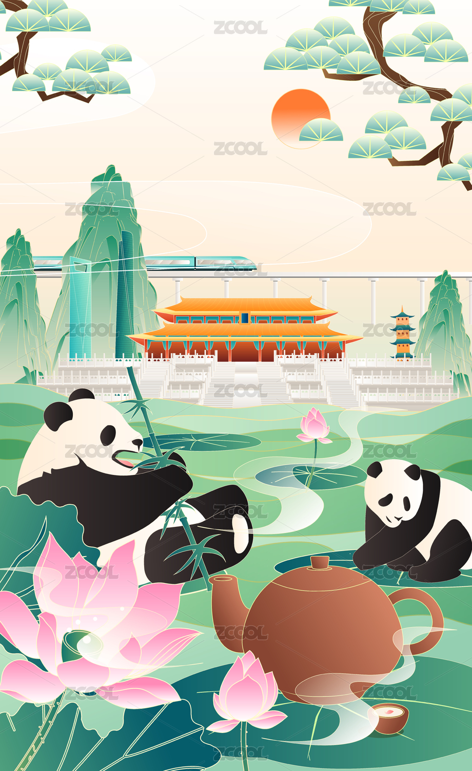 中国风,国潮,日出,日落,山,山水画,插画,HEYYTGF2020,中国画,仙鹤