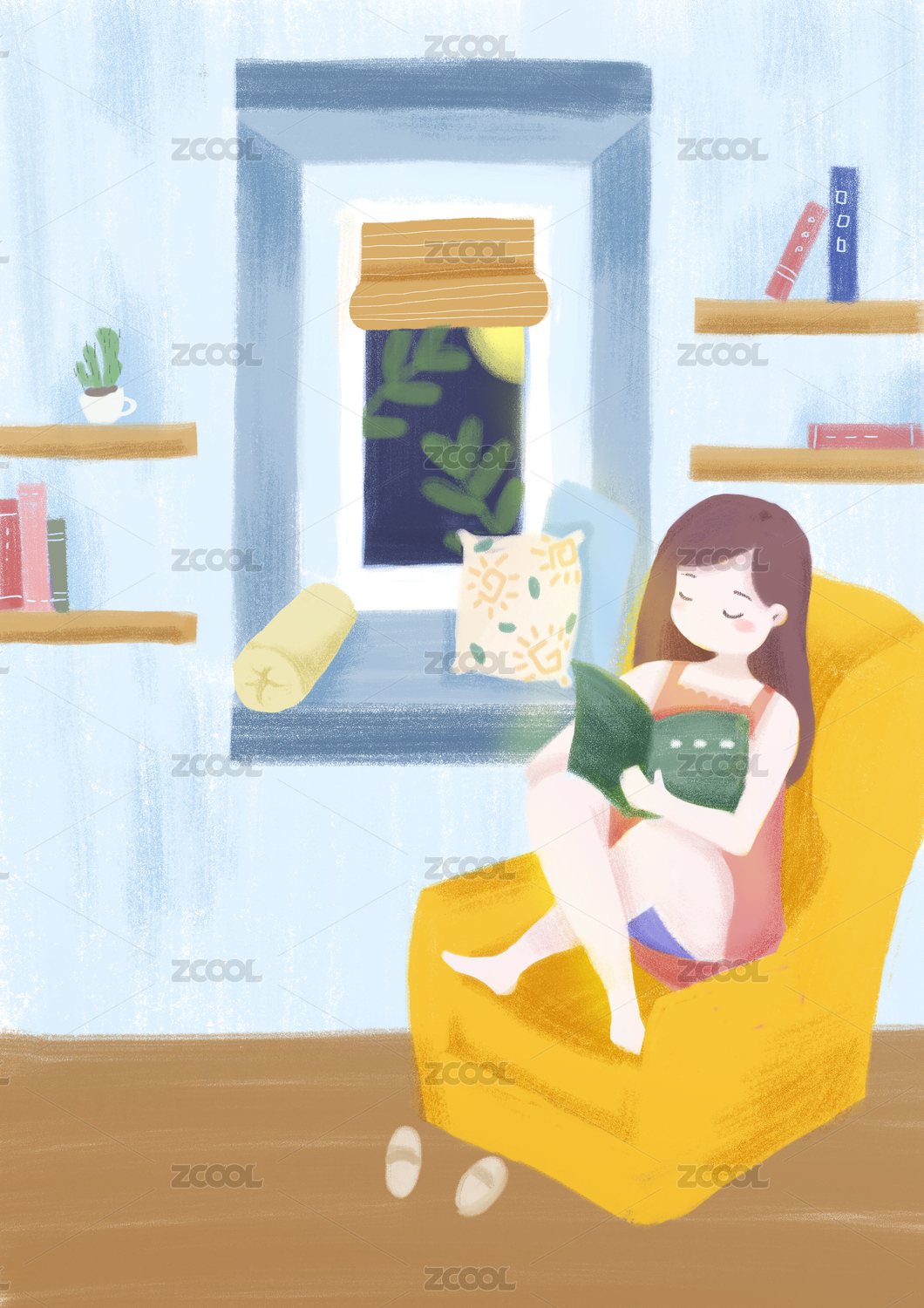 女孩在房间吃腊八粥与猫相处冬天节气插画