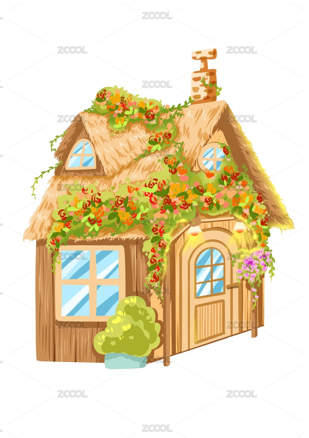 春天鸟房子创意树屋水池植物微场景插画秋天