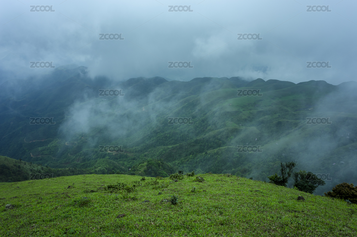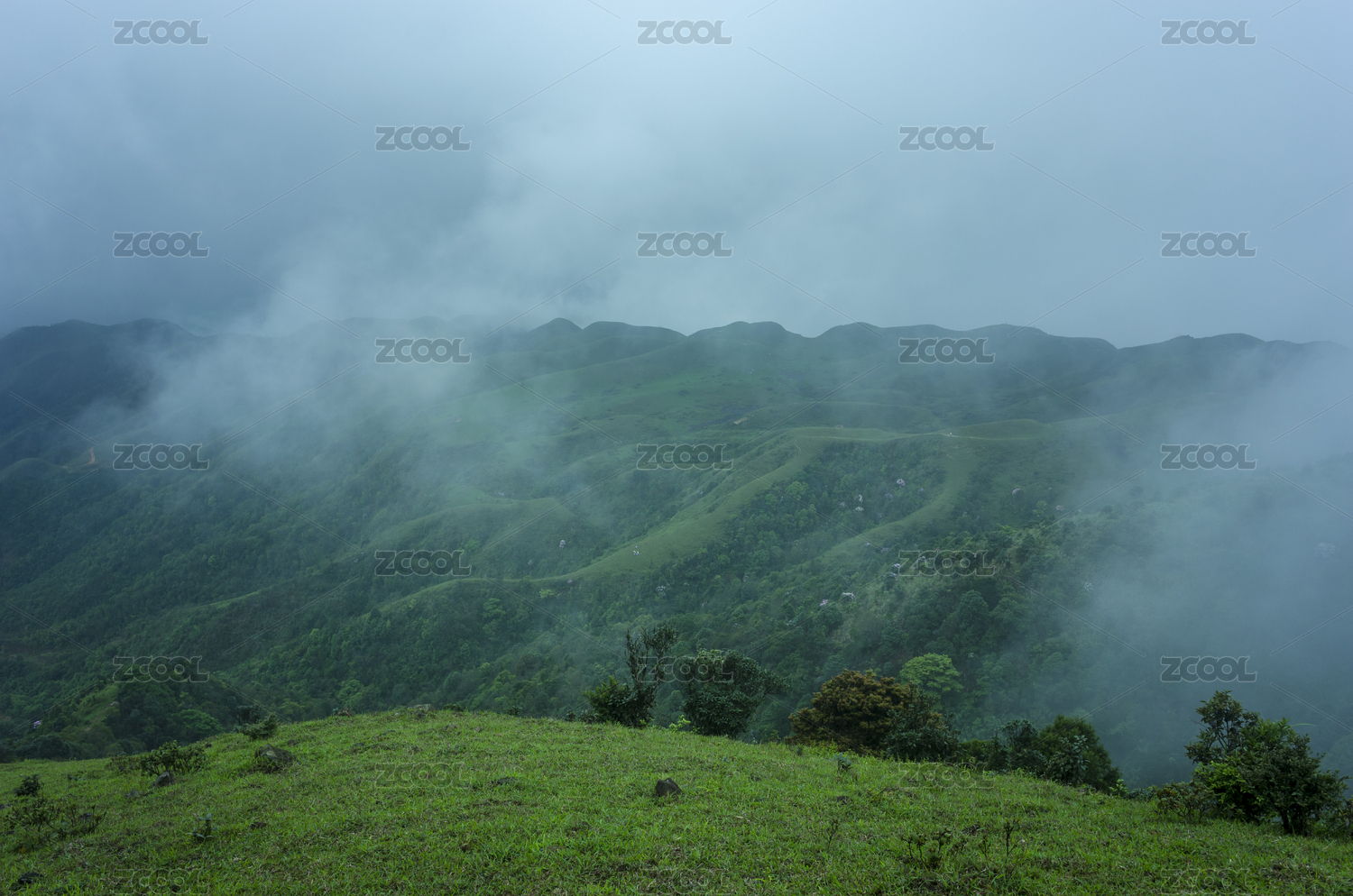 中国广东省阳江市阳春市双滘镇鸡笼顶,雨后的山地