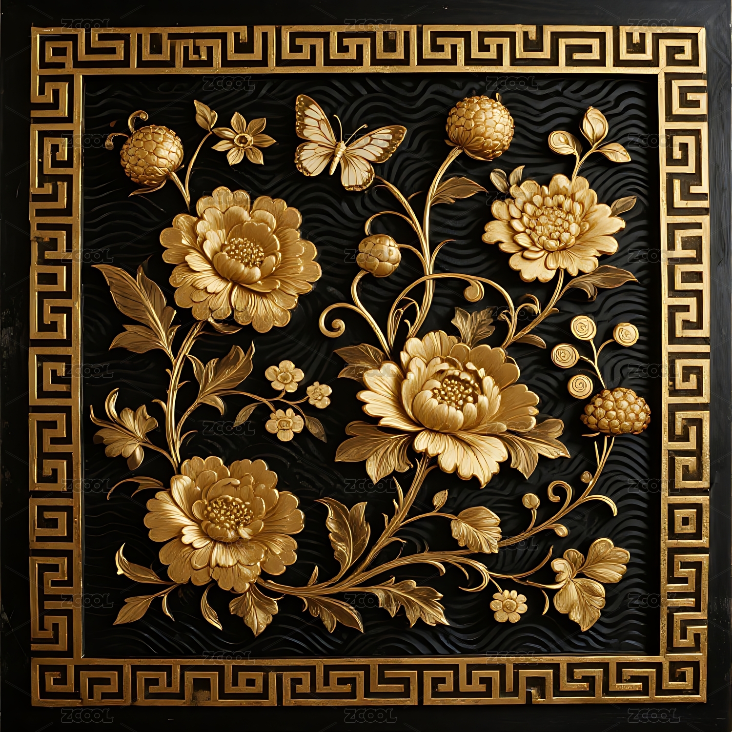 金色浮雕花卉图案