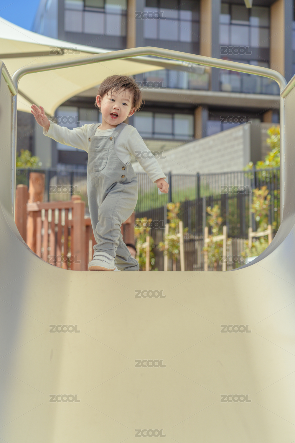 别墅围栏外小道草坪处游玩的两个小伙伴