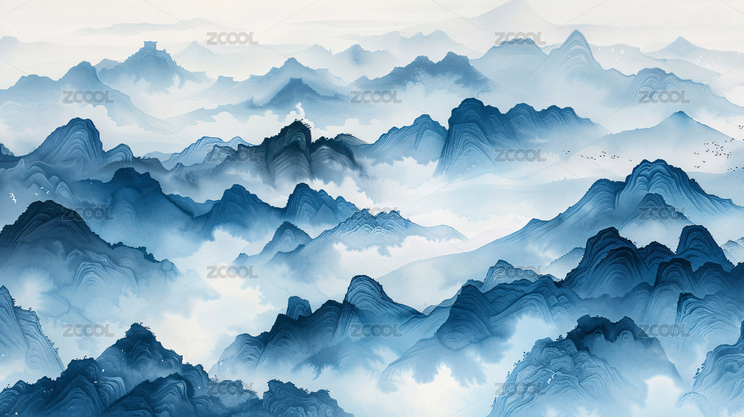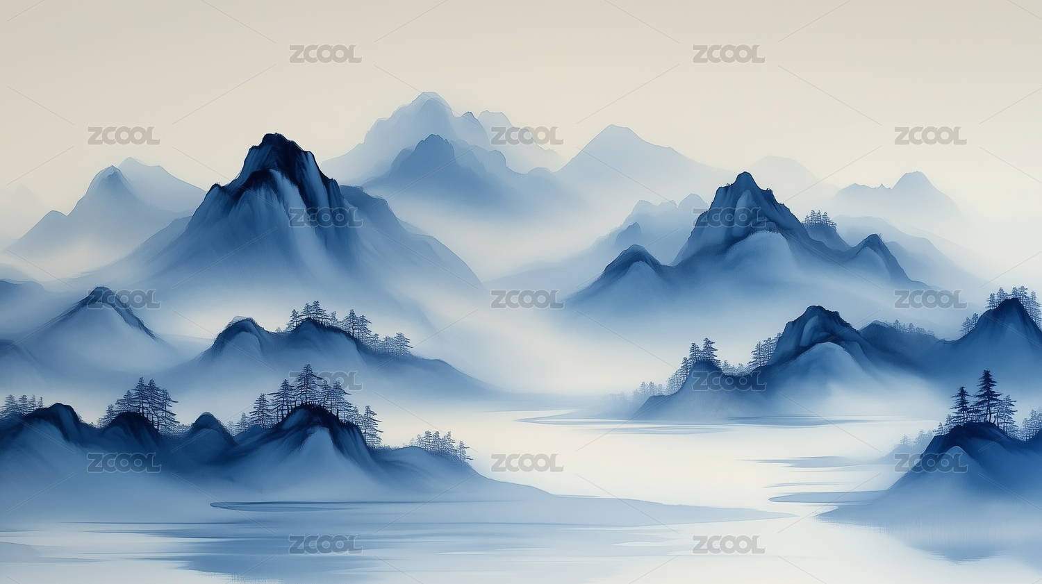 新国风古风国潮青绿山水画水墨传统背景壁纸